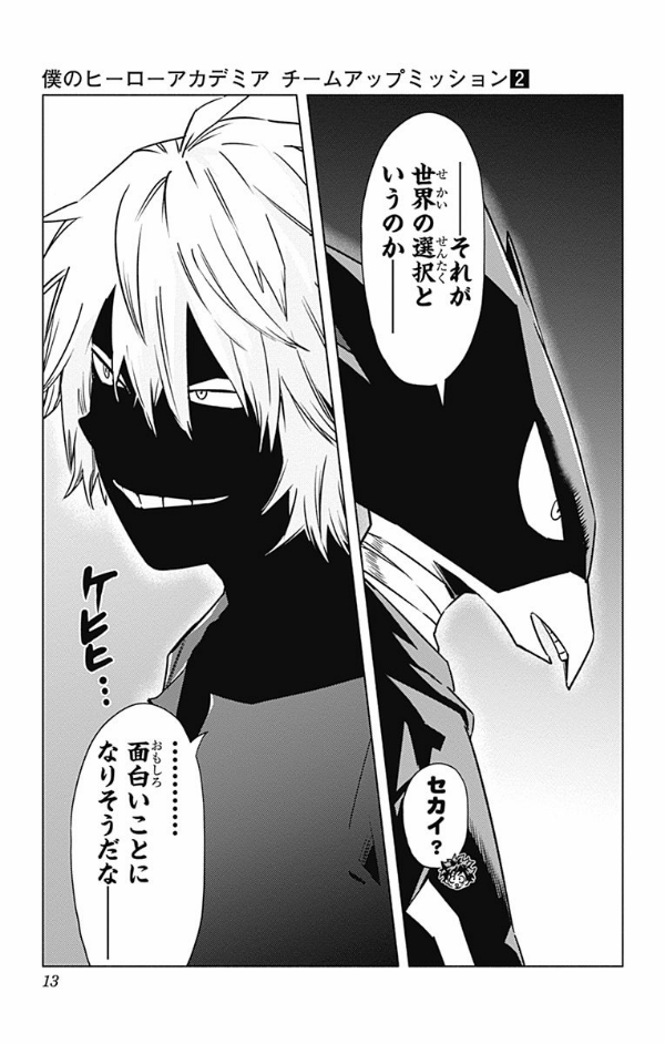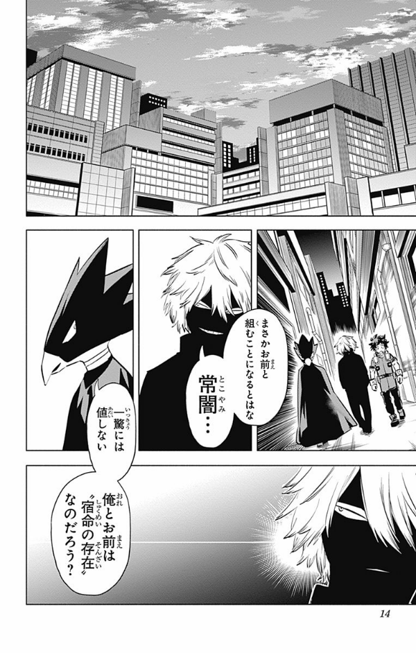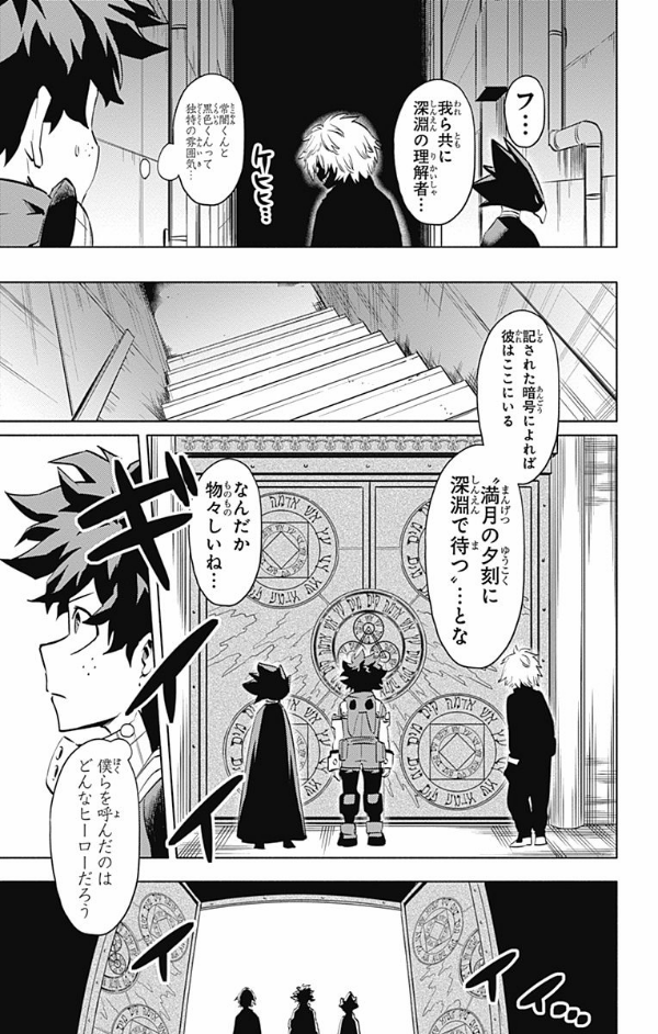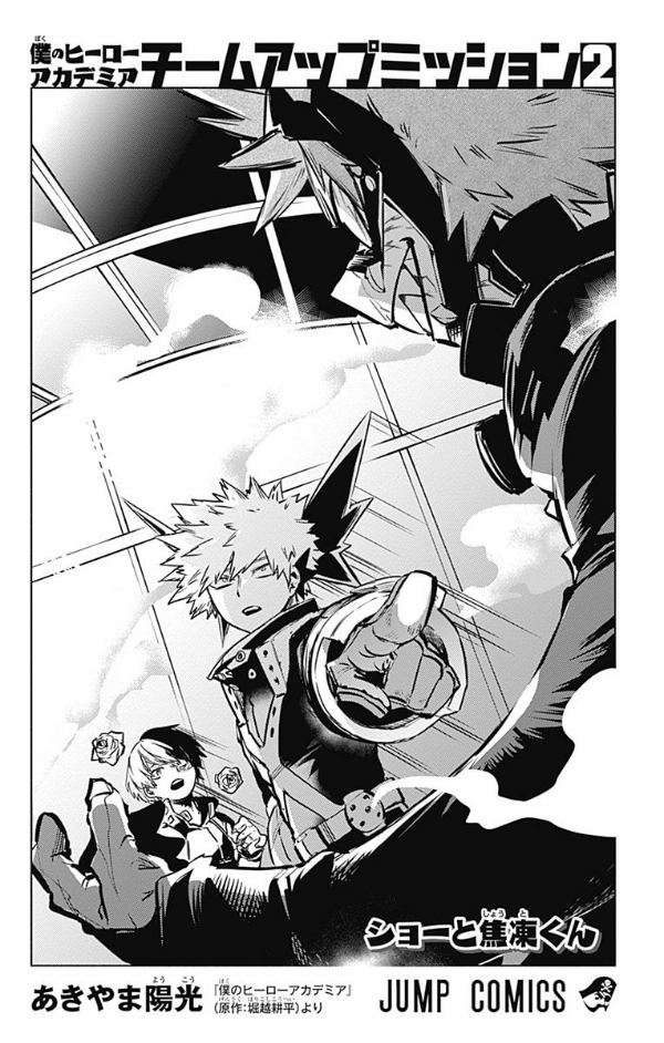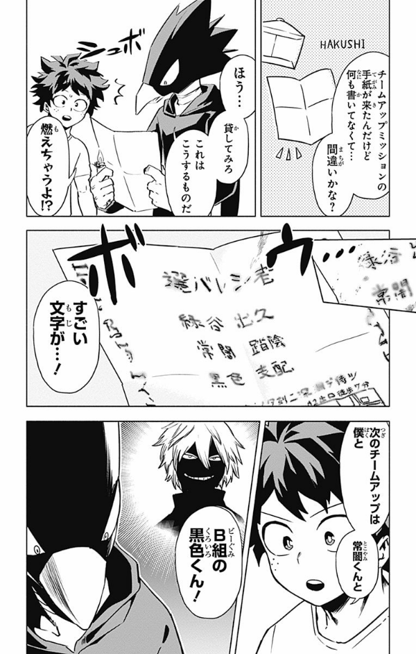 チーム連携と能力強化の為に行う次のミッションは、B組や士傑高校のやつらと協力するらしい。お互いに刺激し合うことで、きっと得られるものがあるはず! (読切『出久&爆豪:ライジング』収録)