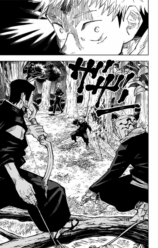 京都姉妹校交流会が始まった。一日目の団体戦は区画内の2級呪霊を先に祓った側の勝利となるのだが、好戦的な東堂は東京側を即襲撃、虎杖が迎え撃つ形に。だが虎杖暗殺の為、他の京都組も参戦し、虎杖は窮地に!!