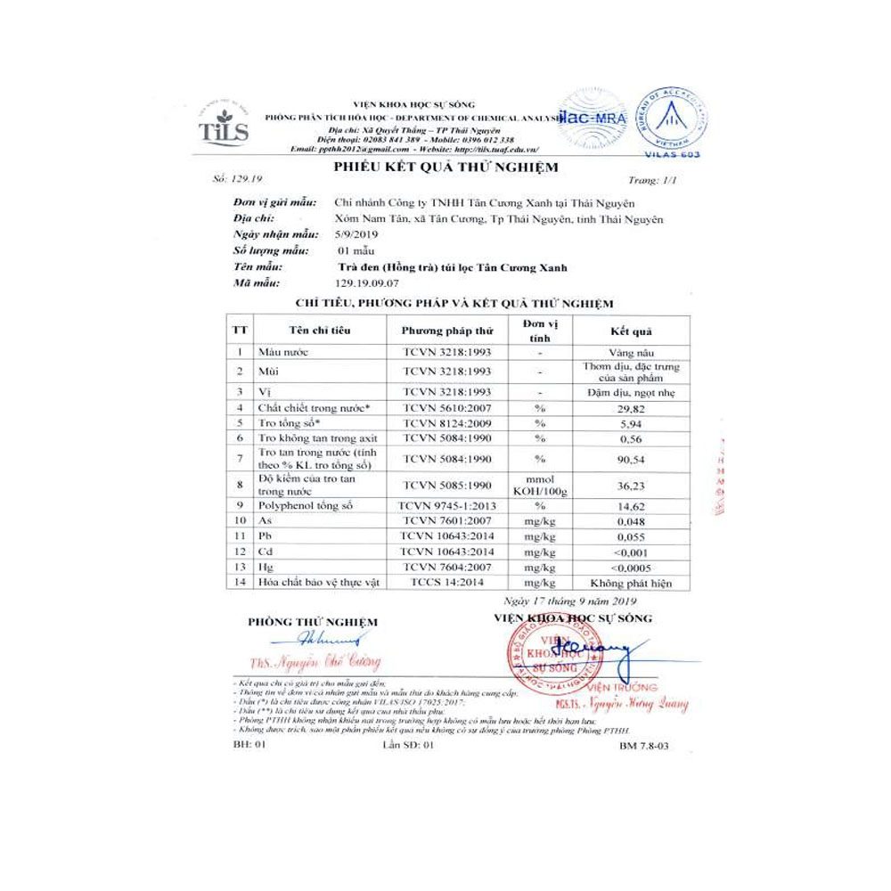 - Số lượng: 100 hộp túi lọc, mỗi hộp chứa 20 túi lọc x 2 gram/túi. MÔ TẢ SẢN PHẨM Hồng Trà hay Trà Đen có hàm lượng Cafein cao hơn trà xanh , vị đậm và mạnh hơn trà xanh. Nên trà đen ngoài công dụng làm trà còn được sử dụng nhiều trong các sản phẩm dược liệu. TÁC DỤNG CỦA TRÀ ĐEN (HỒNG TRÀ): Cải thiện hệ thống miễn dịch tốt hơn Giảm căng thẳng, stress Giảm nguy cơ mắc bệnh tiểu đường Giúp xương chắc khỏe Ngăn ngừa ung thư Cung cấp chất chống oxy hóa Tốt cho sức khỏe tim mạch Khách hàng chia sẻ cảm nhận: QUY TRÌNH SẢN XUẤT: Trà Đen Túi Lọc - Tân Cương Xanh được làm bằng nguyên liệu trà đen nguyên chất. Giấy lọc sử dụng trong sản phẩm trà đen túi lọc là giấy lọc nhập khẩu Đức Trà Đen được nghiền theo tiêu chuẩn và được cho vào máy sản xuất trà túi lọc. Hiện nay Tân Cương Xanh đang sử dụng 2 loại máy sản xuất trà túi lọc công nghệ hiện đại nhất là DXDC 8IV và IMA Sản phẩm sau khi sản xuất sẽ được kiểm tra chất lượng để đạt Công bố chất lượng sản phẩm trước khi đóng gói đưa ra thị trường. TẠI SAO LỰA CHỌN HỒNG TRÀ TÂN CƯƠNG XANH: Nhà sản xuất trực tiếp, giá bán cạnh tranh với nhiều ưu đãi. Shop uy tín trên Tiki. Hỗ trợ đổi hàng trong vòng 07 ngày nếu không hài lòng. Sản phẩm đạt đầy đủ giấy tờ Chứng nhận ATTP. THÔNG TIN NHÀ CUNG CẤP Tân Cương Xanh là hãng sản xuất trà Việt Nam thượng hạng có uy tín và được biết đến bởi đông đảo người tiêu dùng. Công ty đã đầu tư đồng bộ từ vùng nguyên liệu rộng 50 ha ở Tân Cương (Thái Nguyên) đạt tiêu chuẩn VietGap, Nhà máy rộng 2,000 m2 với máy móc hiện đại nhập từ Đài Loan và hệ thống quản lý chất lượng ISO 9000 - 2009, bên cạnh đó công ty đã xây dựng mạng lưới chuỗi cửa hàng 12 cửa hàng trưng bày&giới thiệu sản phẩm ở Hà Nội (10 cửa hàng), TP.HCM (3 cửa hàng) và Thái Nguyên (2 cửa hàng) và hệ thống đại lý phủ khắp 63 tỉnh thành trong cả nước. Công ty cũng tích cực tham gia các hội chợ triển lãm như Tôn Vinh Hàng Việt, Hội Chợ VietFood, ới mong muốn quảng bá rộng rãi đặc sản nổi tiếng của Việt Nam được biết đến không chỉ trong nước mà còn trên thị trường quốc tế. Clip giới thiệu nhà máy chế biến trà Tân Cương Xanh: