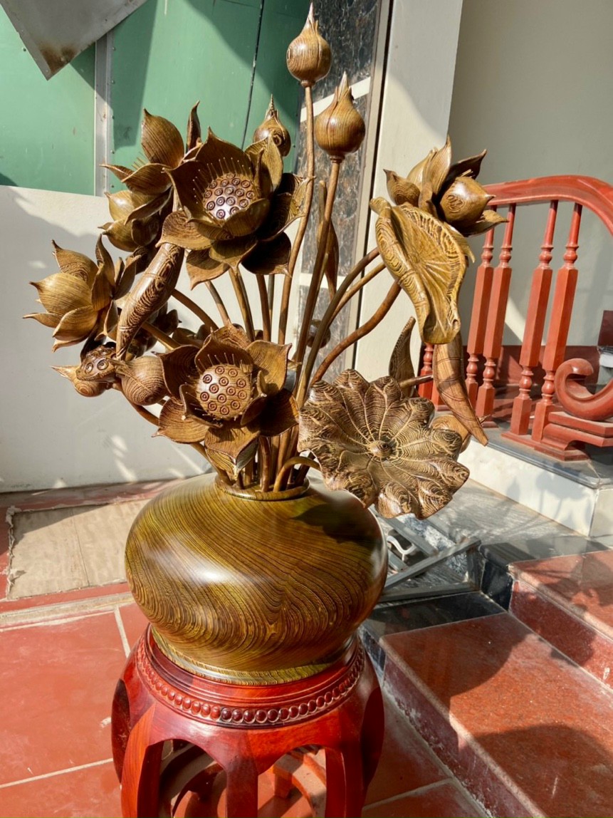 Tác Phẩm Bình Hoa Sen , Chế tác gỗ Mun Đuôi Công .