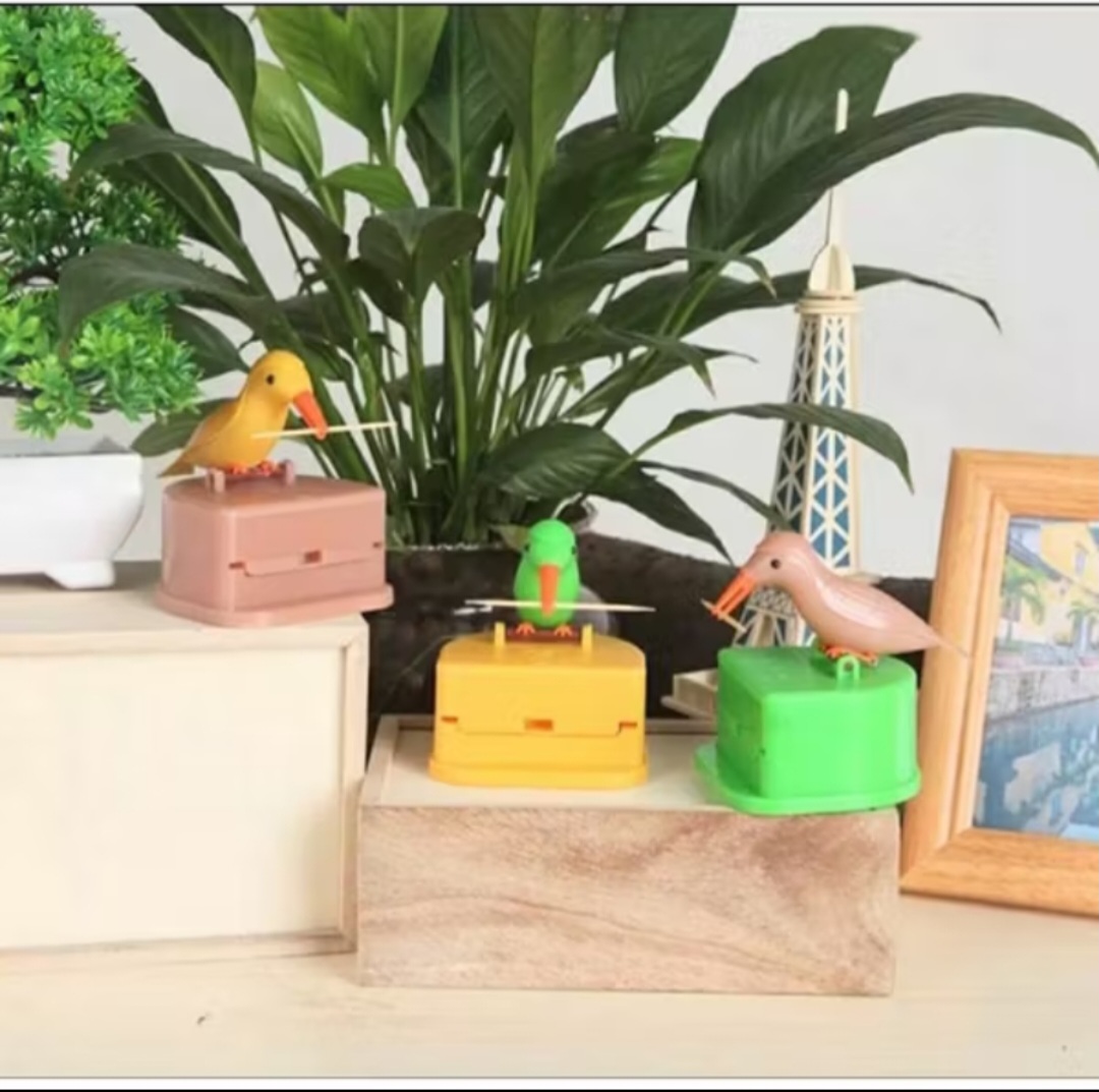 Mô hình nhỏ gọn nhưng ẩn chứa bên trong hộp đựng tăm thông minh chú chim mổ tăm là cả một kiệt tác khoa học – Với lực đẩy của lò xo được gắn vào thân chú chim chỏ, mỗi đợt bạn ấn đầu chim xuống, que tăm lập tức bật ra khỏi vị trí và chú chim có nhiệm vụ gắp que tăm đó chờ bạn sử dụng – Được làm từ chất liệu nhựa cao cấp, không độc hại, an toàn với người sử dụng – Có chú chim nhỏ trên bàn như một vật trang trí tuyệt đẹp, dễ thương và cực kỳ độc đáo – Một chú chim nhỏ màu sắc rực rỡ có thể tự gắp lấy tăm và dâng lên cho chủ nhân của nó, thật tuyệt vời khi bạn sở hữu chú chim thông minh này đúng không nào?