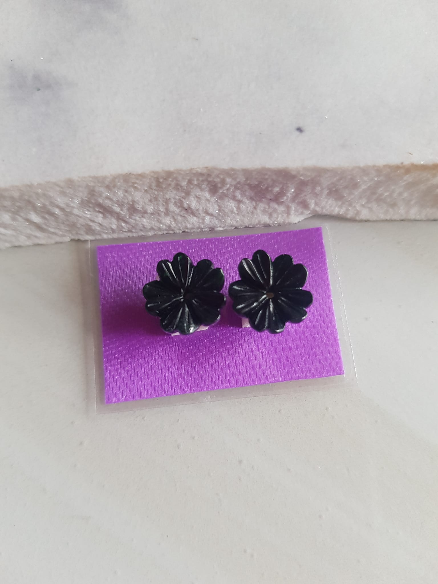✨1 Đôi bông tai Kiểu Mới lạ đẹp Bông Hoa Mai Trái Tim 5 cánh Màu Đen Đá Ngọc cẩm thạch tự nhiên đen bóng đẹp hợp Nữ mệnh Thủy mệnh Mộc ạ Size 9mm x dầy 2,5mm Nữ bọc vàng đeo rất đẹp sang ạ