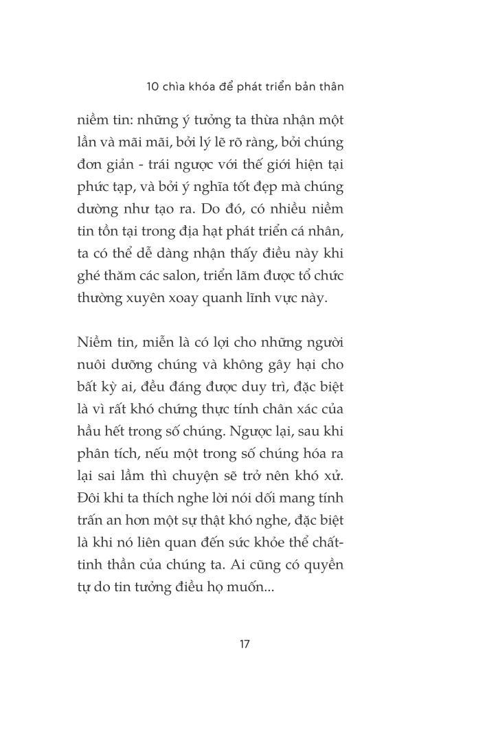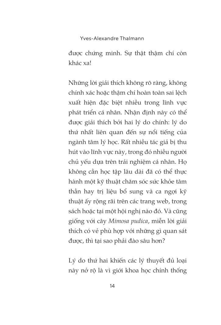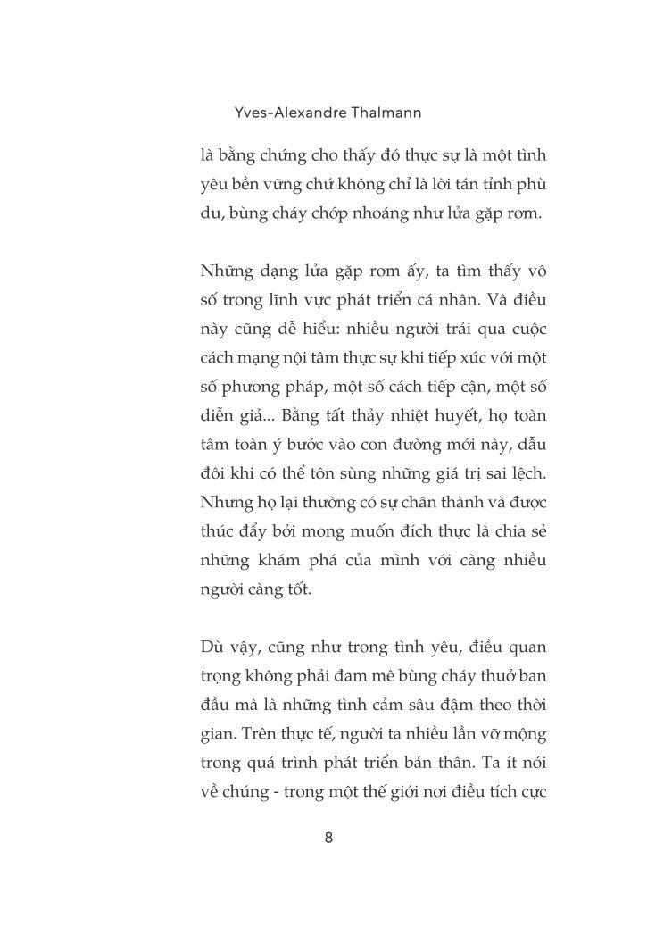 Trong cuốn sách 10 chìa khóa phát triển bản thân. Điều thực sự giúp bạn hạnh phúc, dựa trên những khám phá mới nhất trong lĩnh vực tâm lý học và khoa học nhận thức, Yves-Alexandre Thalmann đã vén bức màn về những niềm tin vô căn cứ đang dần đưa bạn cách xa cánh cửa của hạnh phúc.