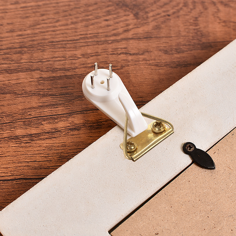 Đóng gói: 1 bộ móc treo tranh (gồm 2 mảnh ghép lại với nhau khi treo) + vít ️ Tính năng Móc treo tranh với 2 mảnh: 1 mảnh khoan vào tường, 1 mảnh bắt