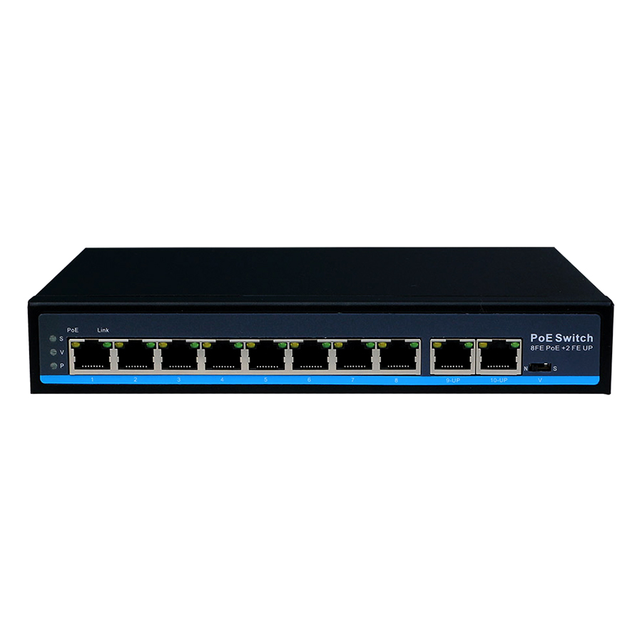 ✨10 Port Fast Ethernet, 8 port PoE, one port supported 60w, Ethernet Switch