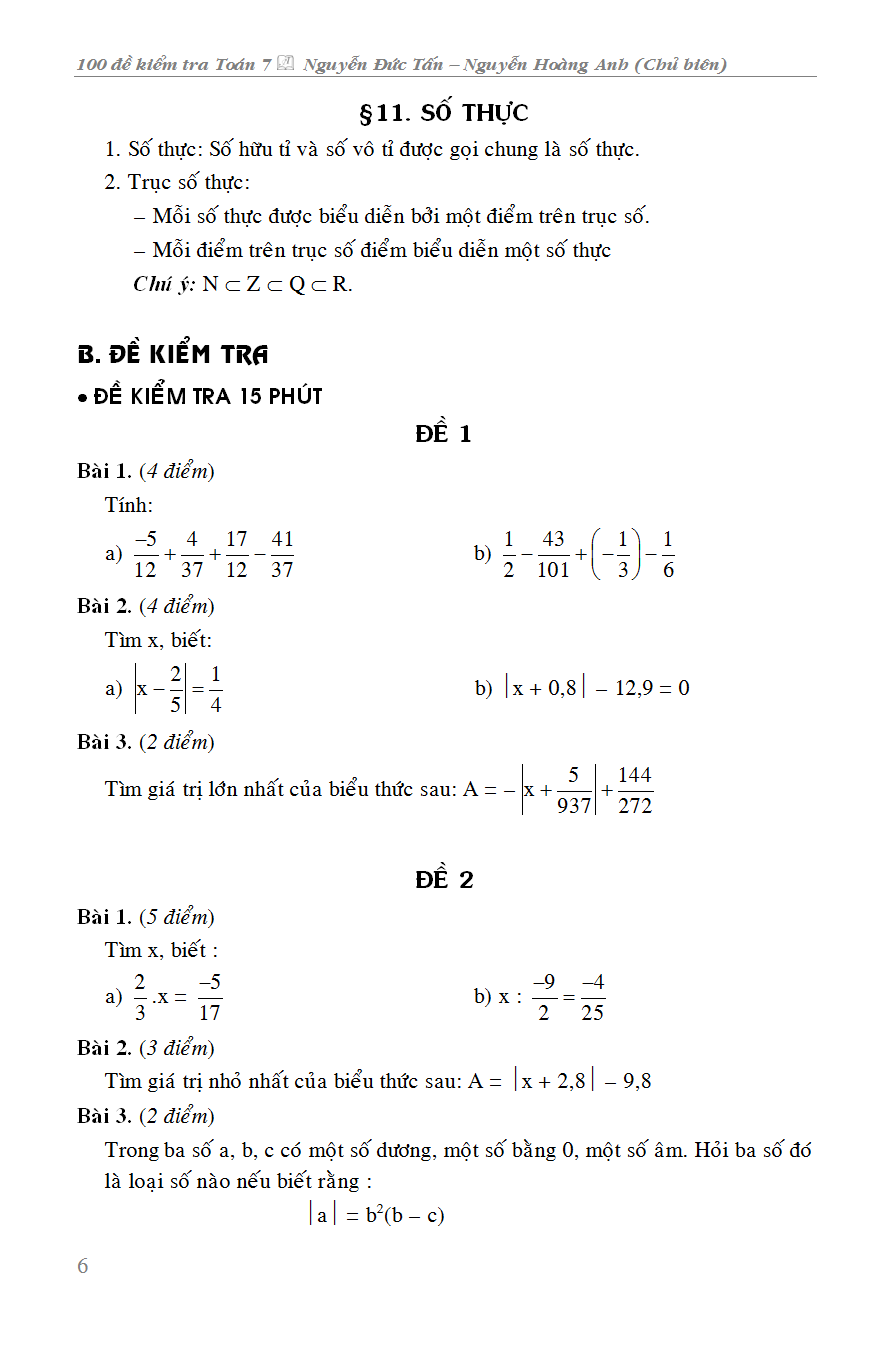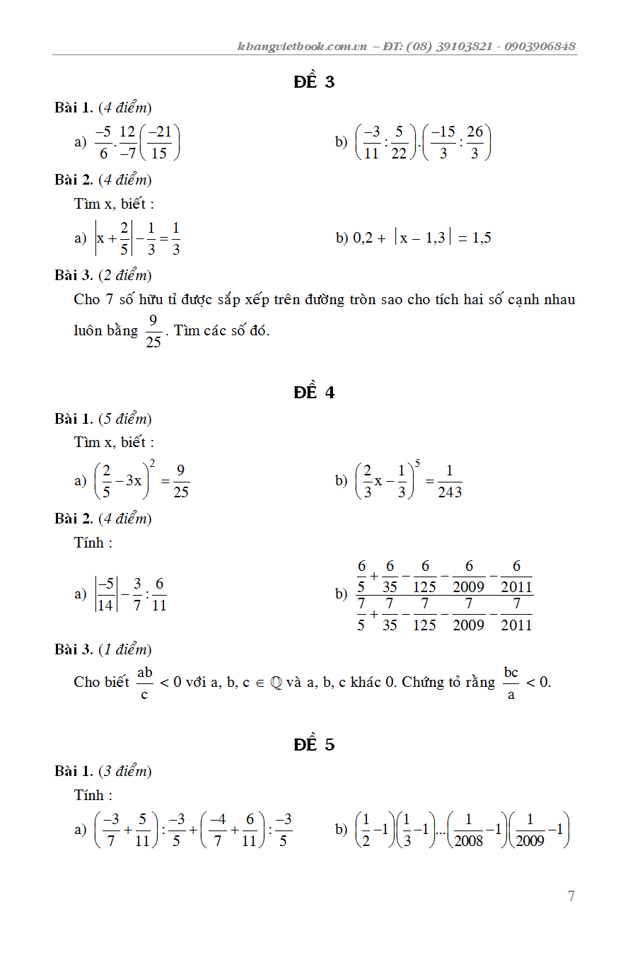 ✨ 100 Đề Kiểm Tra Toán 7 _KV