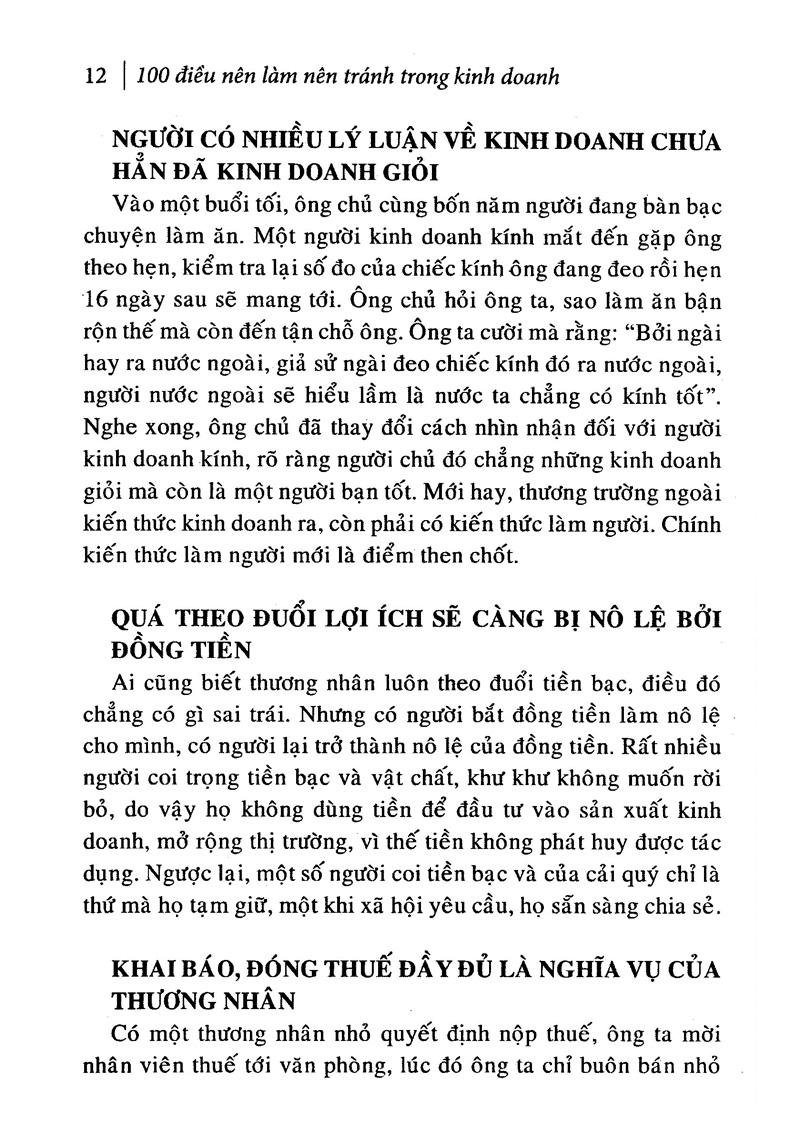 Trong thương trường ai cũng có thể kinh doanh, nhưng không phải ai cũng kiếm được tiền, chỉ có những người có con mắt tinh đời mới có thể nắm bắt được cơ hội, vận may, chỉ có những người nắm vững bí quyết kinh doanh mới thu về lợi nhuận. Vì lẽ đó, cuốn sách 100 Điều Nên Làm, Nên Tránh Trong Kinh Doanh đã ra đời.