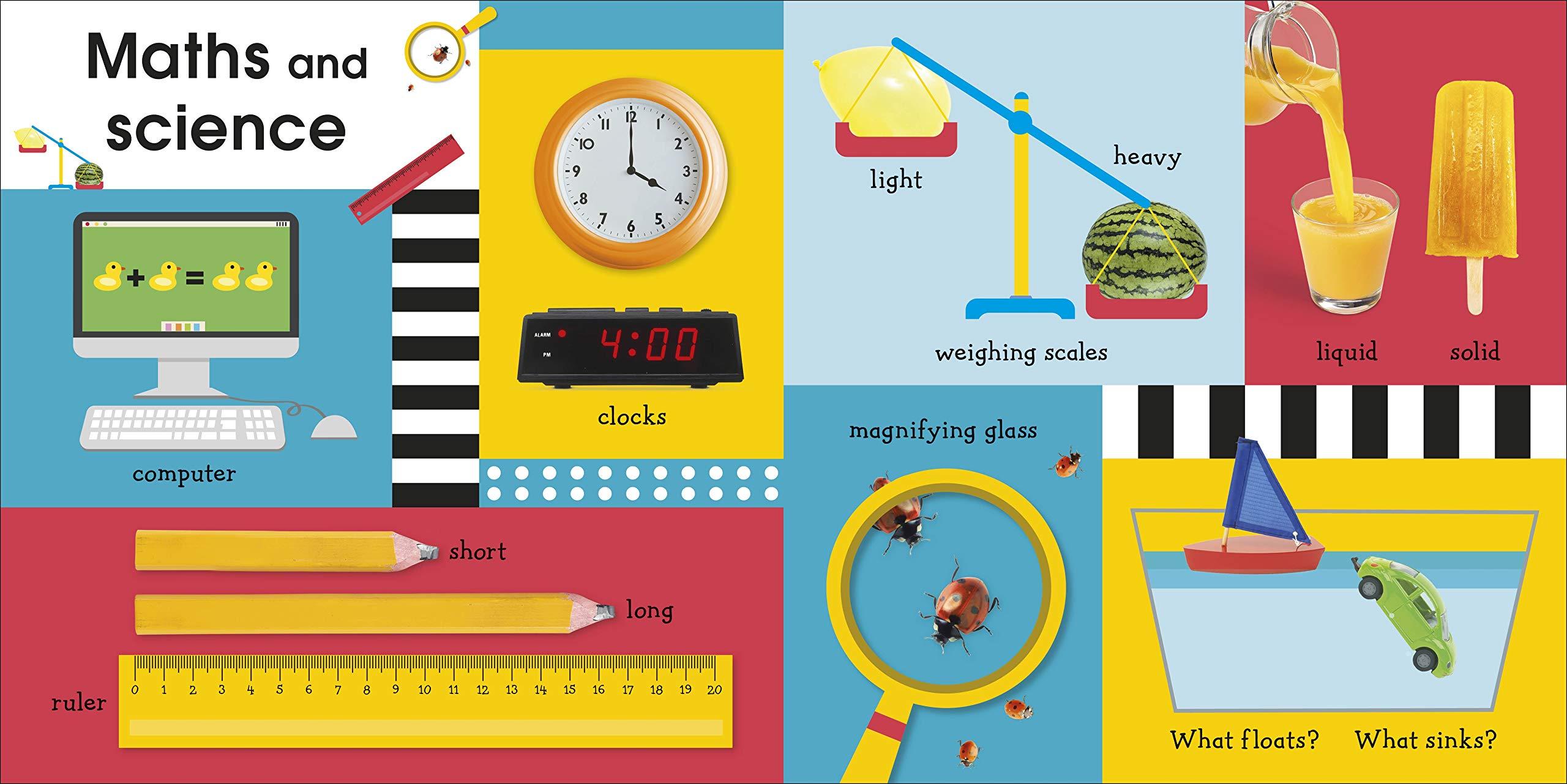 Help your little one learn important vocabulary and build knowledge with this first word and picture book. Cleverly designed to inform and entertain, 100 First Things to Know takes your little one on an exciting learning adventure. As they point to the pictures and say the words, children can soon recognise colours, shapes, and patterns, count to 10, learn about life cycles, and name weathers and seasons. They will also be introduced to words from the worlds of art, music, maths, and science.