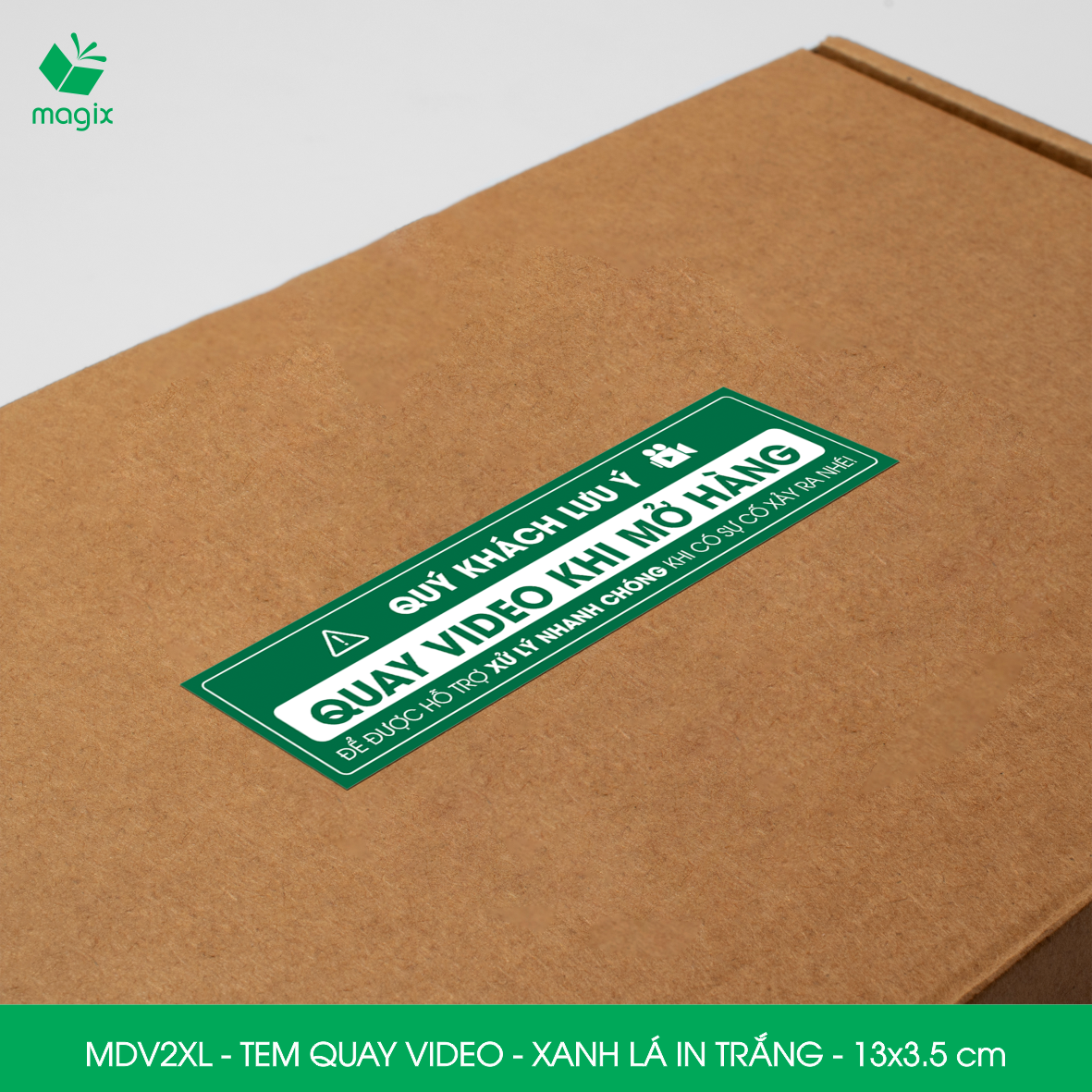 ✨100 Tem chú ý quay video trước khi mở hàng, decal dán hộp - 13x3,5 cm - Xanh lá in trắng - MDV2XL
