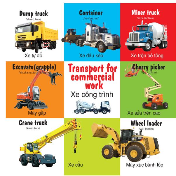 Bộ sách gồm 4 cuốn: số đếm, động vật, phương tiện giao thông, bảng chữ cái màu sắc hình dạng