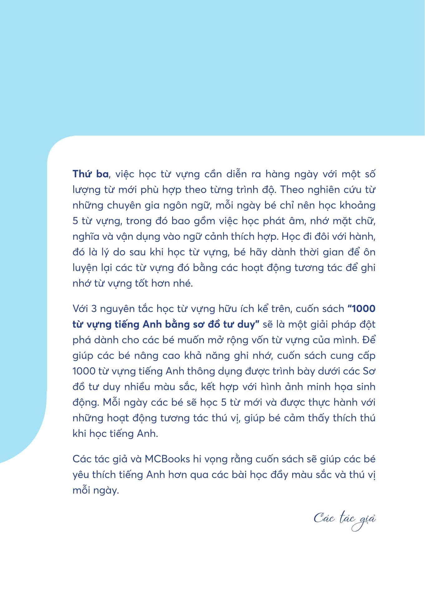 Với những ưu điểm ở trên, cuốn sách “1000 Mind Map English Words – 1000 từ vựng tiếng Anh bằng sơ đồ tư duy” sẽ là một giải pháp đột phá dành cho các bé muốn nâng cao khả năng cũng như điểm số môn tiếng Anh của mình.