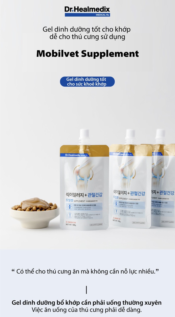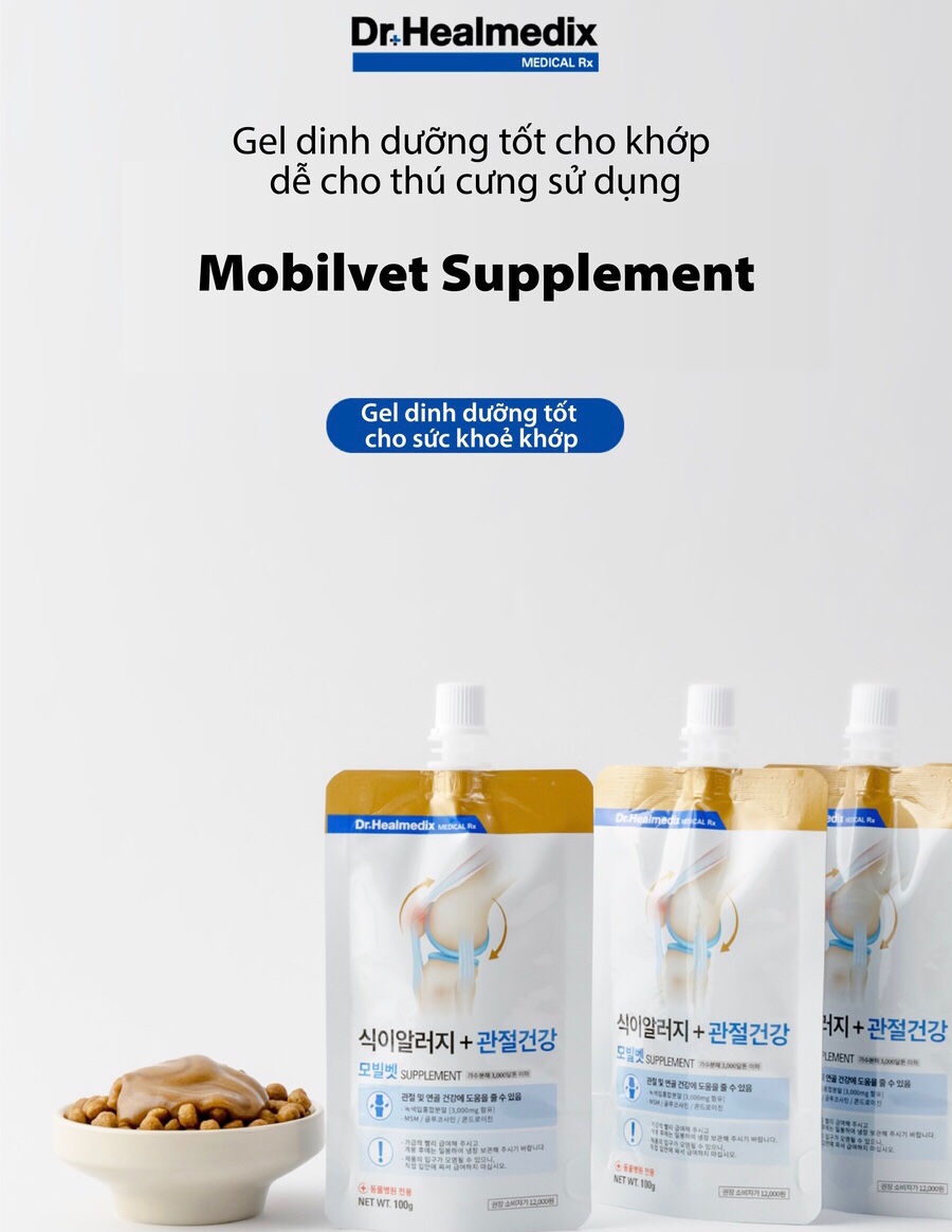 NEW PACKING ***100g Gel dinh dưỡng Dr.Healmedix Mobilvet Supplement bảo vệ xương khớp,tăng miễn dịch,chống dị ứng Hiệu quả: - Giúp giữ cho da và lông khoẻ mạnh - Tăng cường miễn dịch và chống
