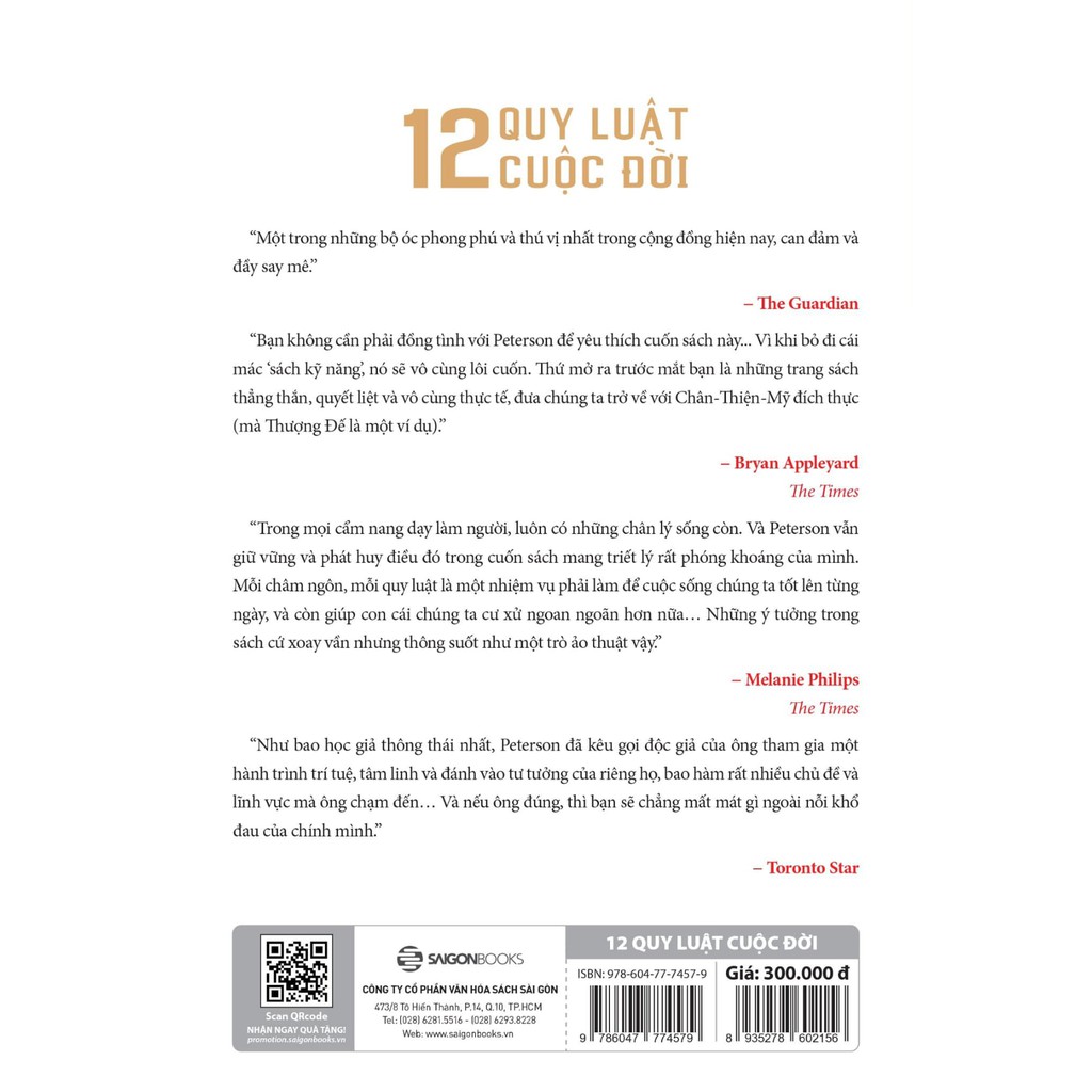 “12 Quy luật cuộc đời: Thần dược cho cuộc sống hiện đại” của Jordan B. Peterson đem đến cho người đọc 12 nguyên lý mà tác giả cho là phép màu giữa cuộc sống đầy hỗn độn hiện nay. Việc hiểu được thế giới đã từng như thế nào, hiện nay đang ra sao và ngày mai có thay đổi gì hoàn toàn không phải là mục đích, mà chỉ là phương tiện; mục đích là biết phải ứng xử thế nào trước thế giới ấy. Các quy luật của Jordan Peterson sẽ dẫn dắt bạn đi trên con đường tìm ra các lựa chọn ứng xử phù hợp nhất.