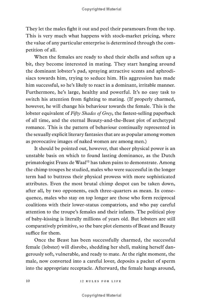 Drawing on vivid examples from the author's clinical practice and personal life, cutting edge psychology and philosophy, and lessons from humanity's oldest myths and stories, 12 Rules for Life offers a deeply rewarding antidote to the chaos in our lives: eternal truths applied to our modern problems.