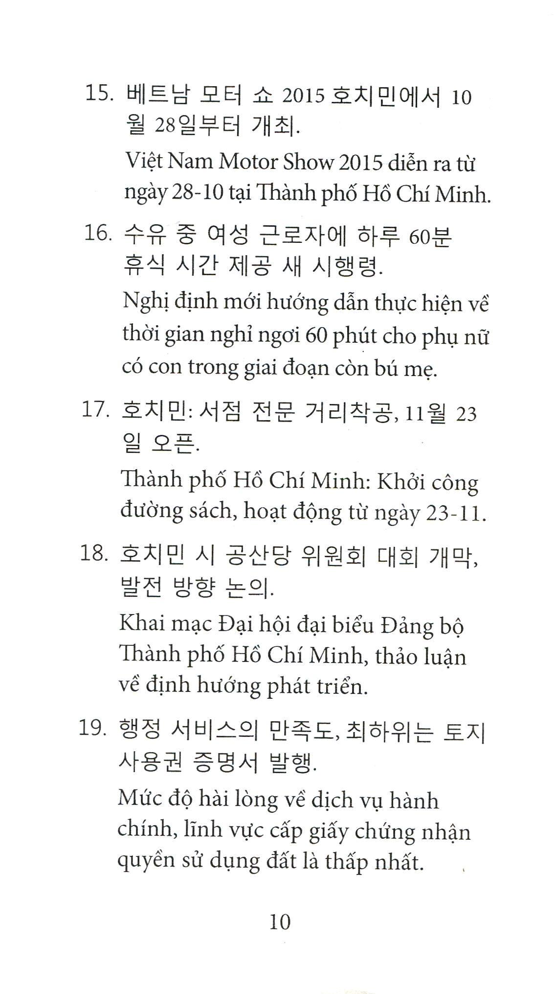 Do tập hợp các đầu đề bản tin, bài tin tiếng Hàn, vì vậy câu văn tiếng Hàn có thể thiếu cấu trúc ngữ pháp hoàn chỉnh, chúng tôi không điều chỉnh, sửa đổi vì đây là văn phong của người Hàn Quốc, tài liệu giúp độc giả làm quen với phong cách diễn đạt này .