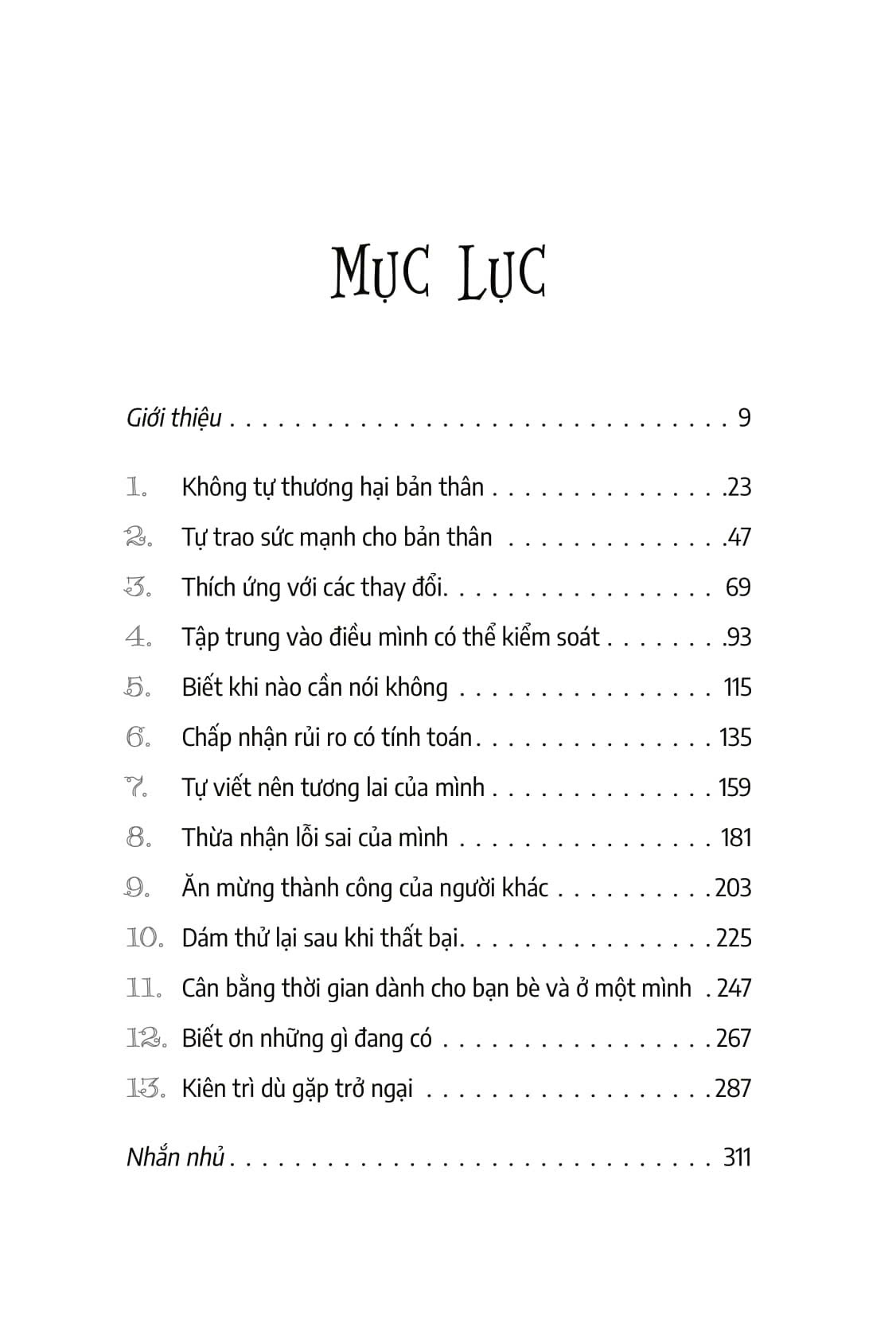 Và đó là công dụng của cuốn sách này. Mỗi chương sẽ đặt ra các bài tập nhỏ để giúp bạn trở nên mạnh mẽ hơn từng chút. Nếu tập luyện, bạn sẽ thấy việc thực hiện những điều các bạn nhỏ mạnh mẽ hay làm dễ hơn rất nhiều.