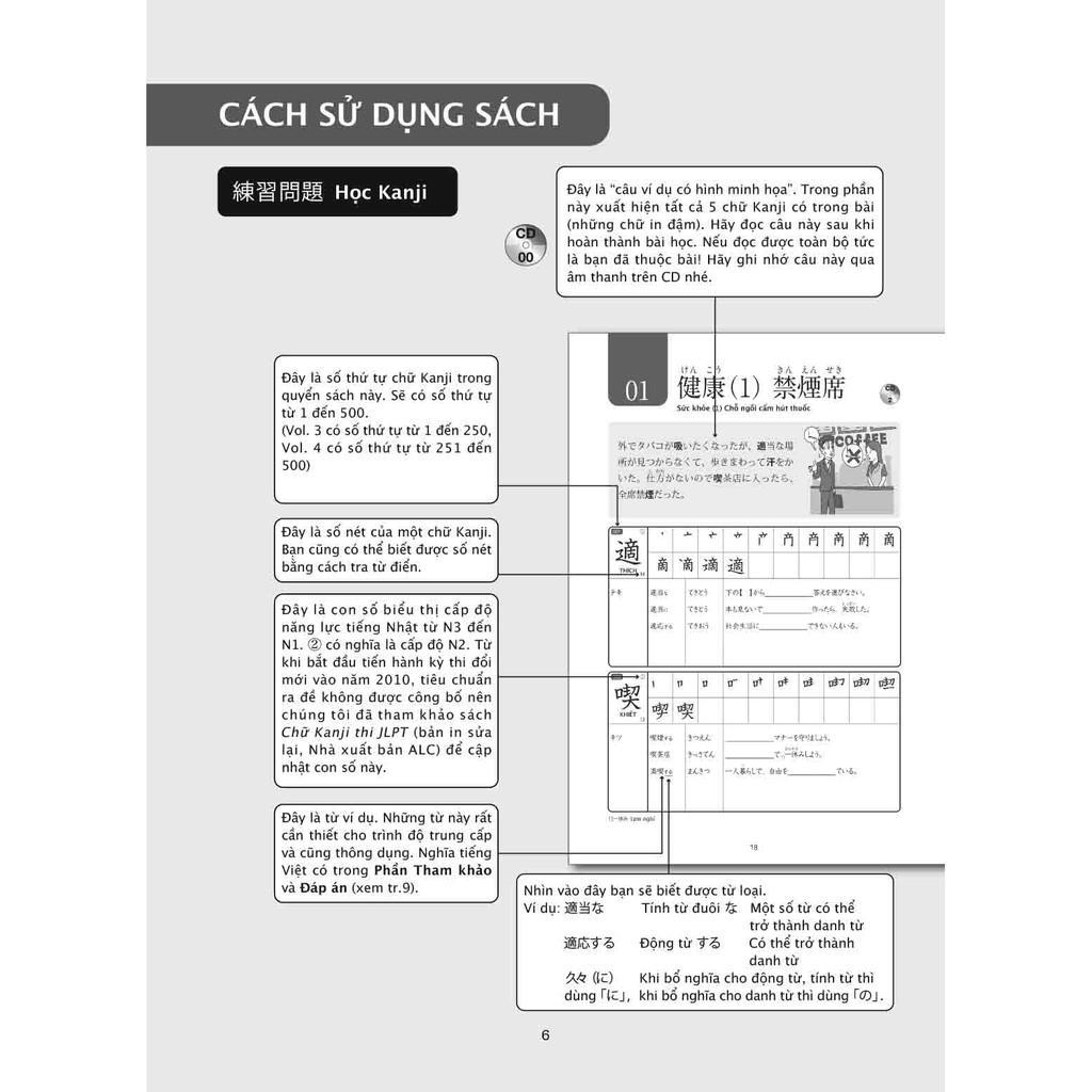 Ngoài ra, tất cả những chữ Kanji trong giáo trình này đều có câu ví dụ kèm theo vì vậy, bạn có thể hiểu được không chỉ Kanji và cả cách dùng từ vựng, tiếp thu được các mẫu câu. Thêm vào đó, thành ngữ và các cách nói người Nhật thường sử dụng cũng xuất hiện trong sách, giúp cho bạn có thể tiếp cận tiếng Nhật một cách tự nhiên hơn.