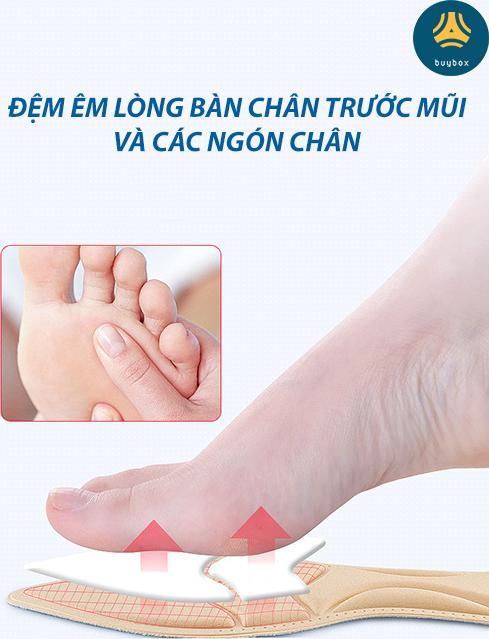 CÔNG DỤNG NỔI BẬT Lót giày nguyên bàn chân đa năng buybox là sự kết hợp giữa lót giày và lót giảm size giày. Lót mũi giày đệm êm ngón chân cũng có công dụng
