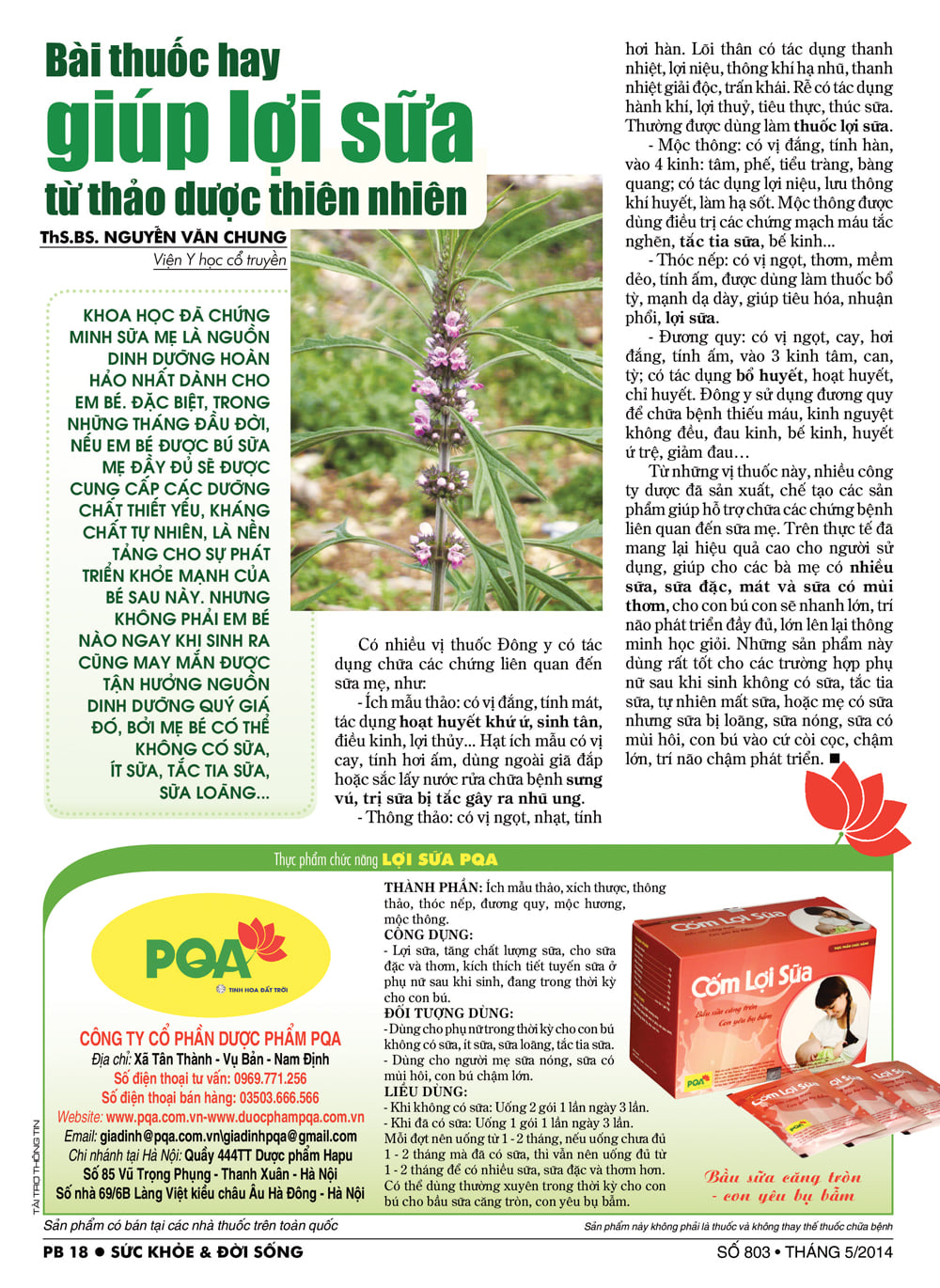 Cốm Lợi Sữa PQA hỗ trợ bổ khí huyết, tăng tiết sữa. Hỗ trợ giảm tắc tia sữa, ít sữa, mất sữa.