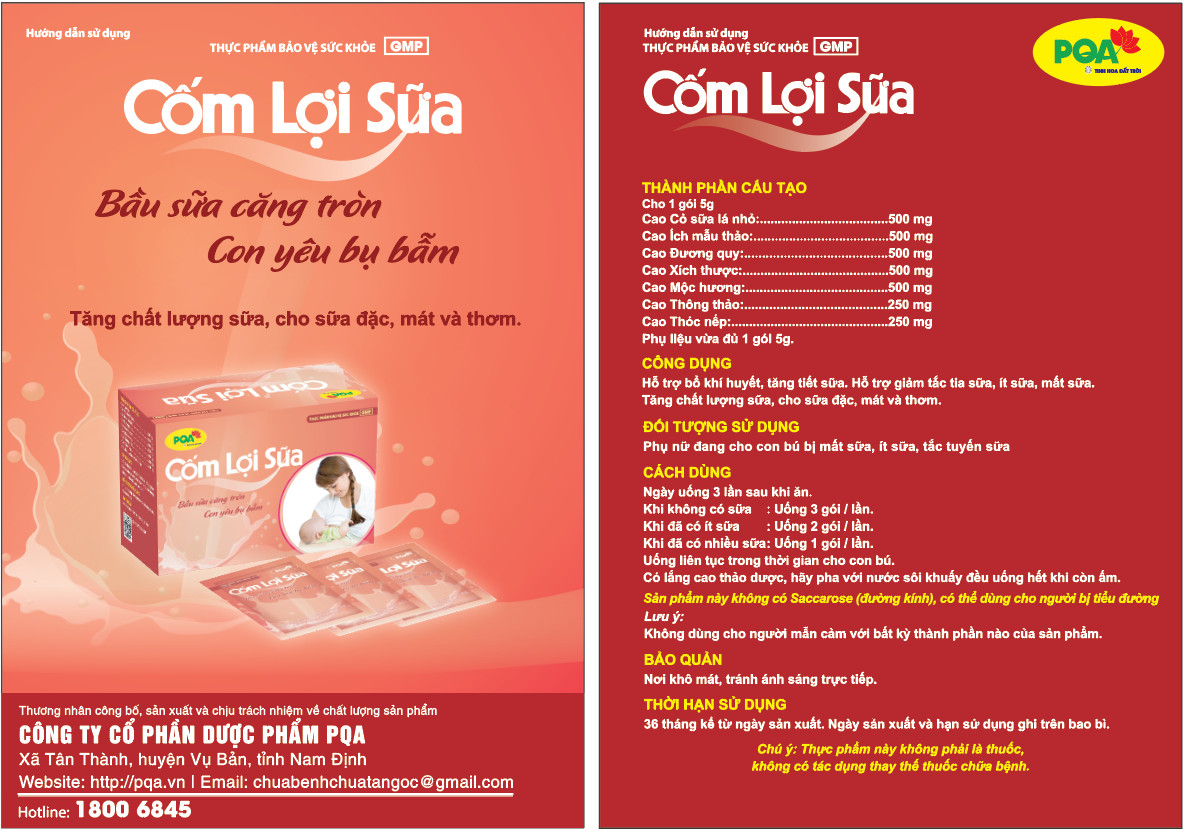 CỐM LỢI SỮA PQA giúp tắc tia sữa sau sinh hiệu quả