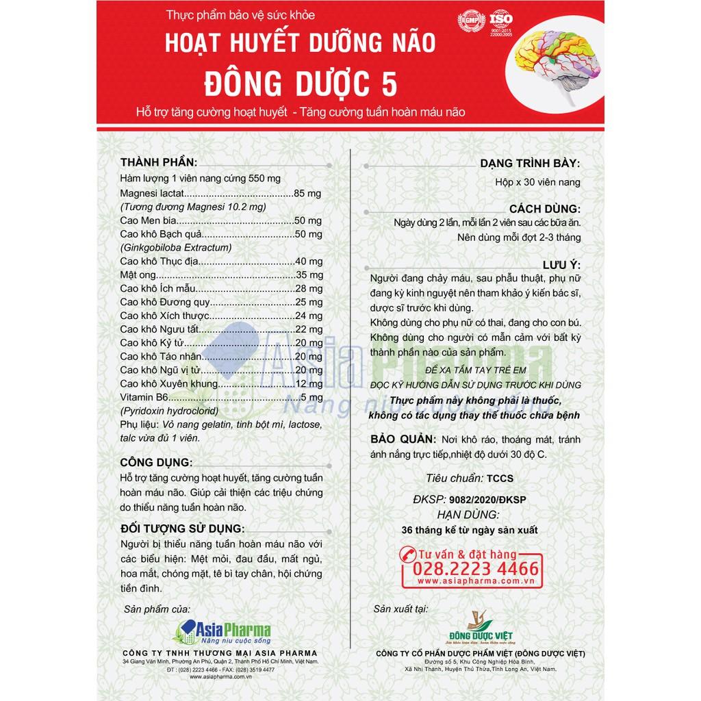 ✨[2 HỘP] Viên uống hoạt huyết dưỡng não Đông Dược 5 Asia Pharma hỗ trợ thiểu năng tuần hoàn não - Hộp 30 viên