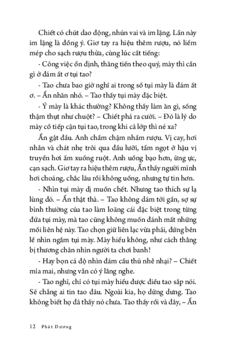 Trích đoạn Những chùm trái đỏ “Người xa vắng nhớ chăng cảnh này? Còn nhớ không gã trai bạn của những mùa vàng xưa? Đỉnh dùng răng cắn bật cái nút chai, ngửa cổ tu từng