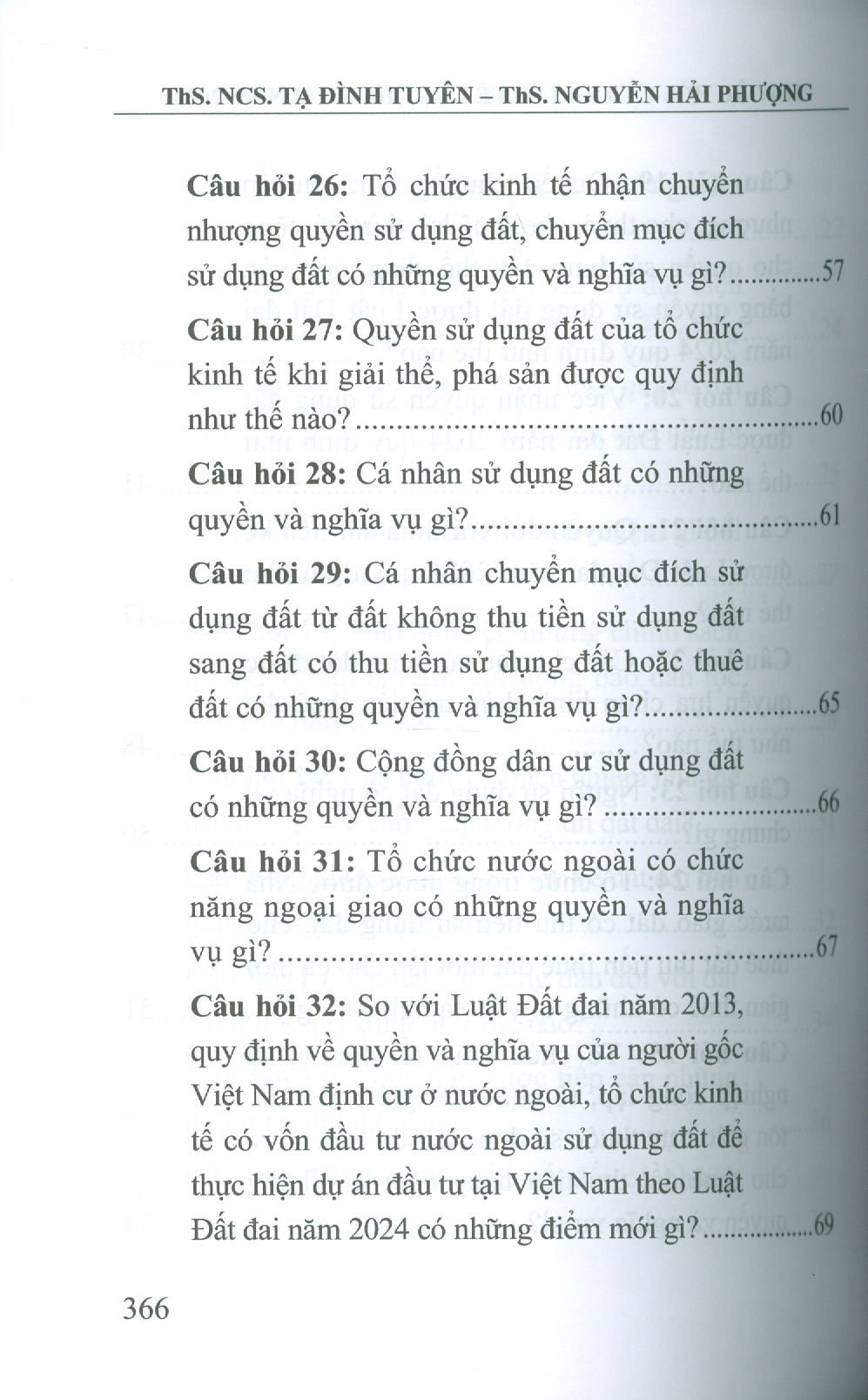 ✨200 Câu Hỏi Và Trả Lời Về Luật Đất Đai Năm 2024 (Sách chuyên khảo) - ThS. NCS. Tạ Đình Tuyên, ThS. Nguyễn Hải Phượng