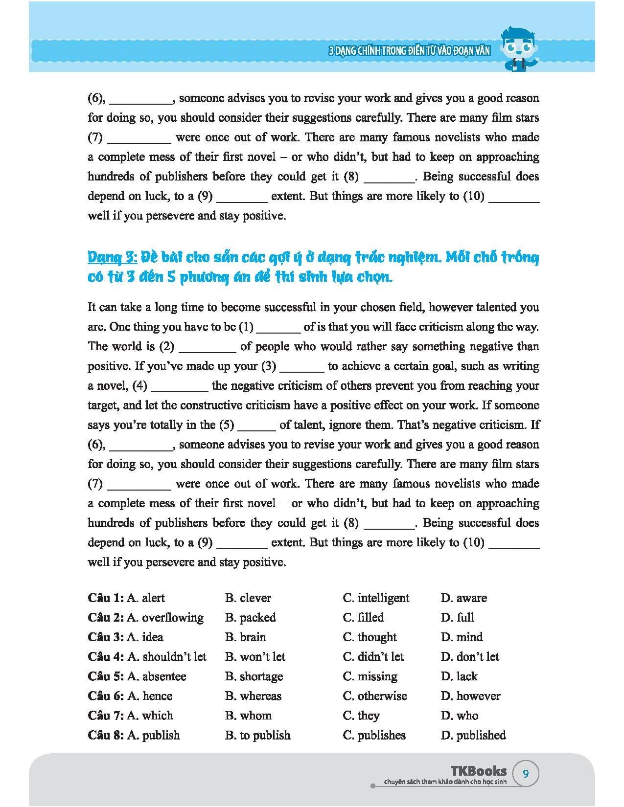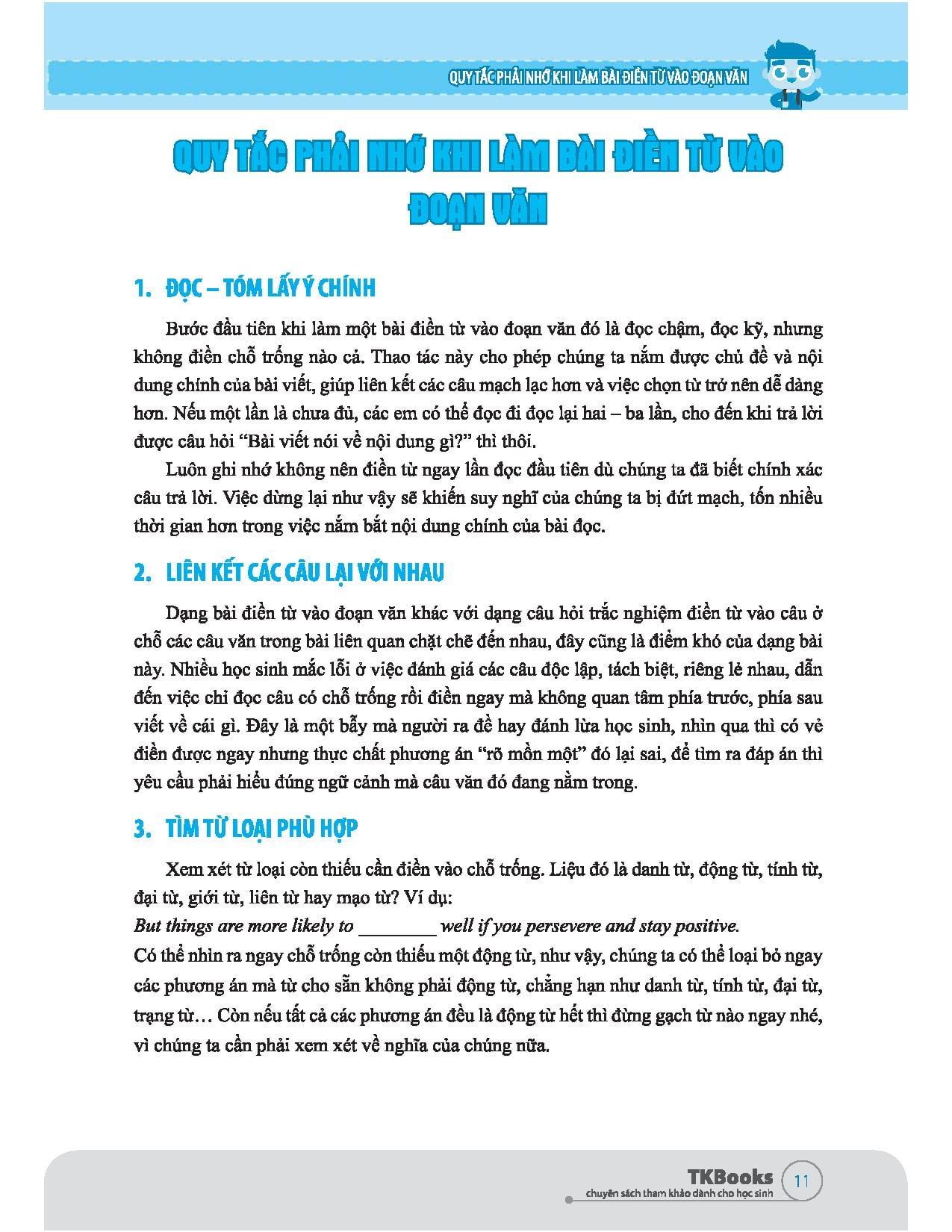 Cuốn sách sẽ cung cấp cho các em những quy tắc làm bài chính là những phương pháp phù hợp đối với phần điền từ này.