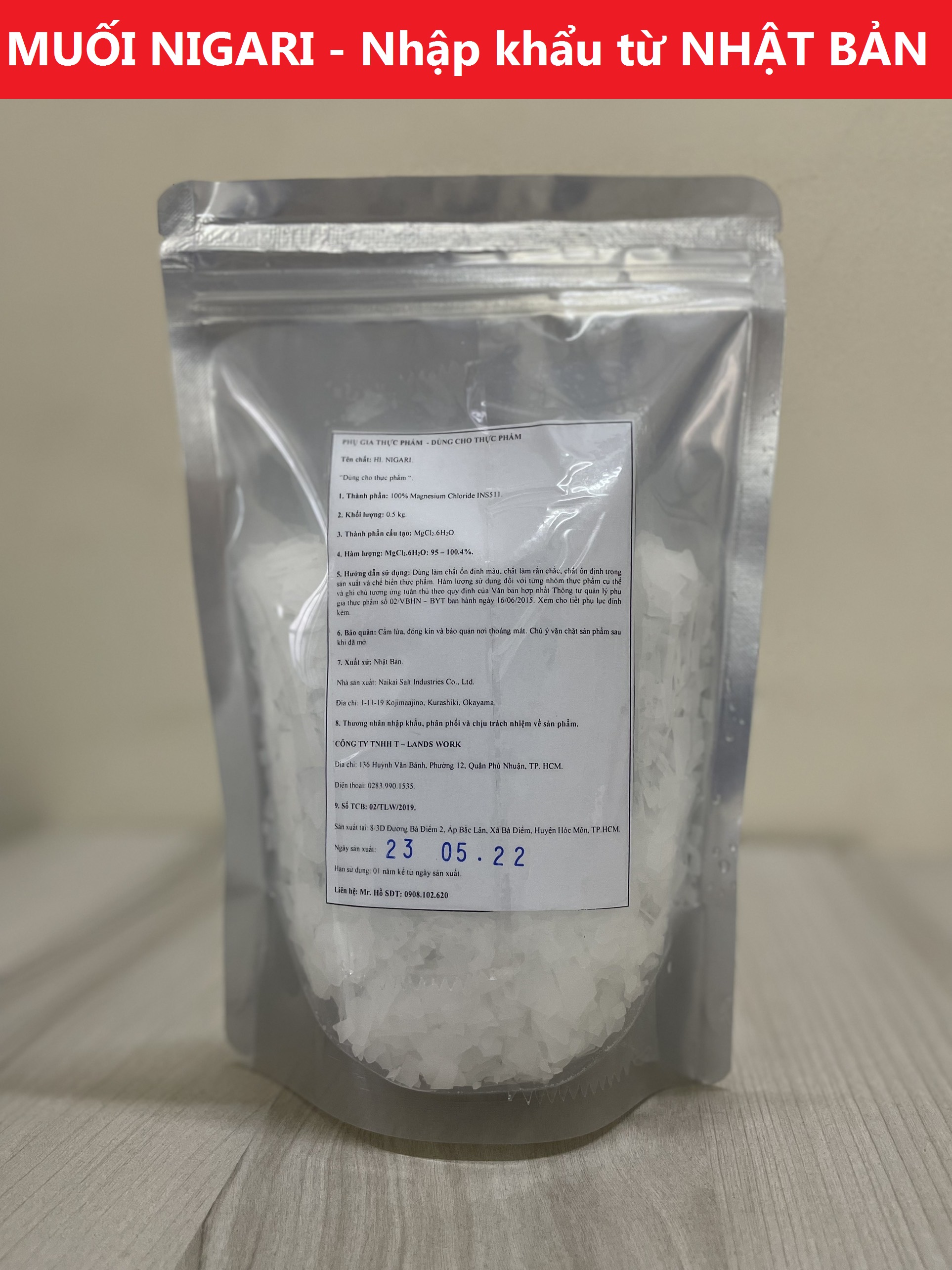 MUỐI NIGARI Nhật Bản 2kg làm đậu hũ nhanh đông ngon béo (Made in Japan) Phụ gia đậu hũ Nigari (Magnesium Chloride INS511). MUỐI HI NIGARI còn có tên gọi khác: Nigari, phụ gia đậu hũ, phụ gia đậu hũ non, đậu hũ nước đường, chất đông tụ đậu hũ.