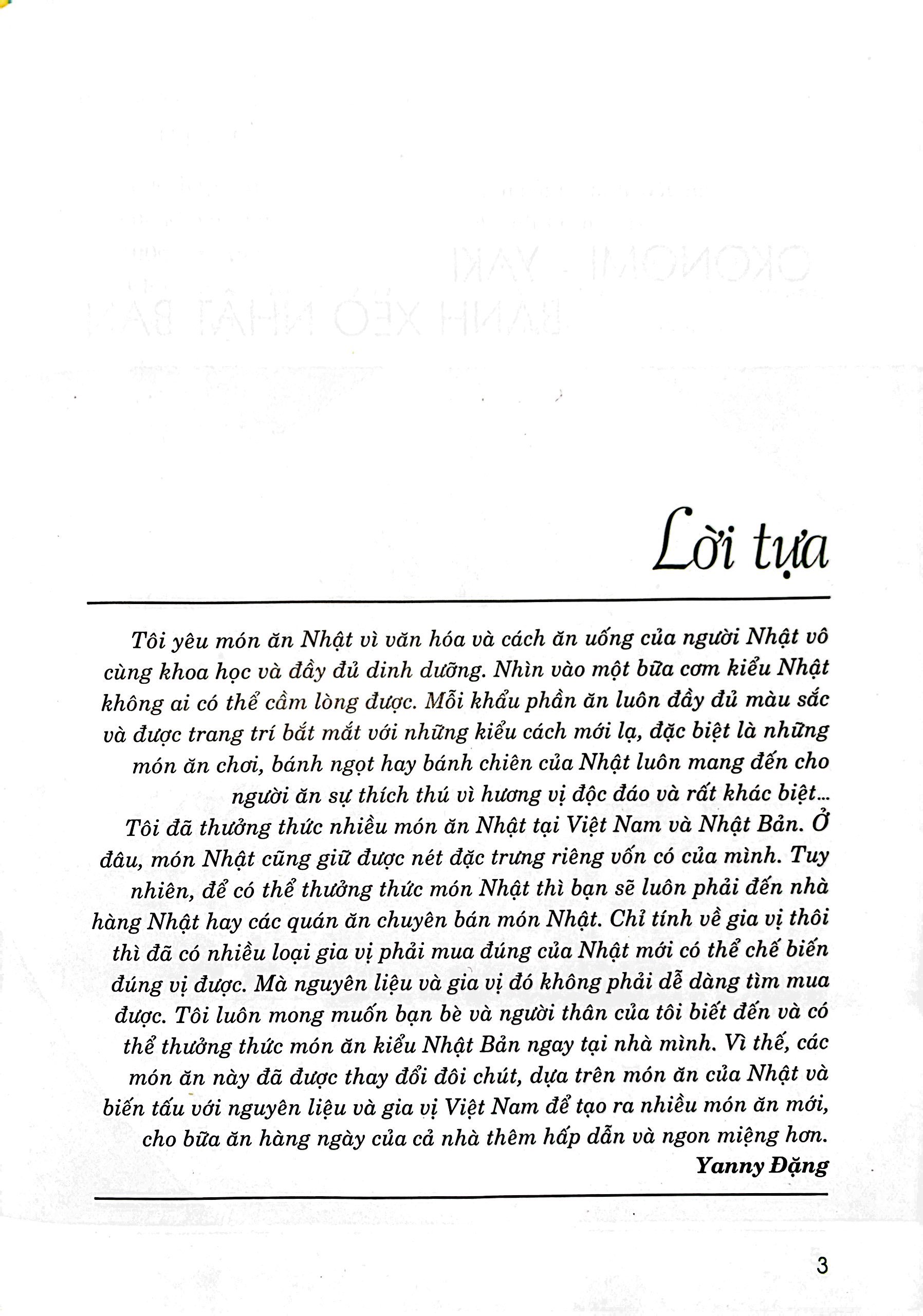 Tôi luôn mong muốn bạn bè và người thân của tôi biết đến và có thể thưởng thức món ăn kiểu Nhật Bản ngay tại nhà mình. Vì thế, các món ăn này đã được thay đổi đôi chút, dựa trên món ăn của Nhật và biến tấu với nguyên liệu và gia vị Việt Nam để tạo ra nhiều món ăn mới, cho bữa ăn hàng ngày của cả nhà thêm hấp dẫn và ngon miệng hơn.