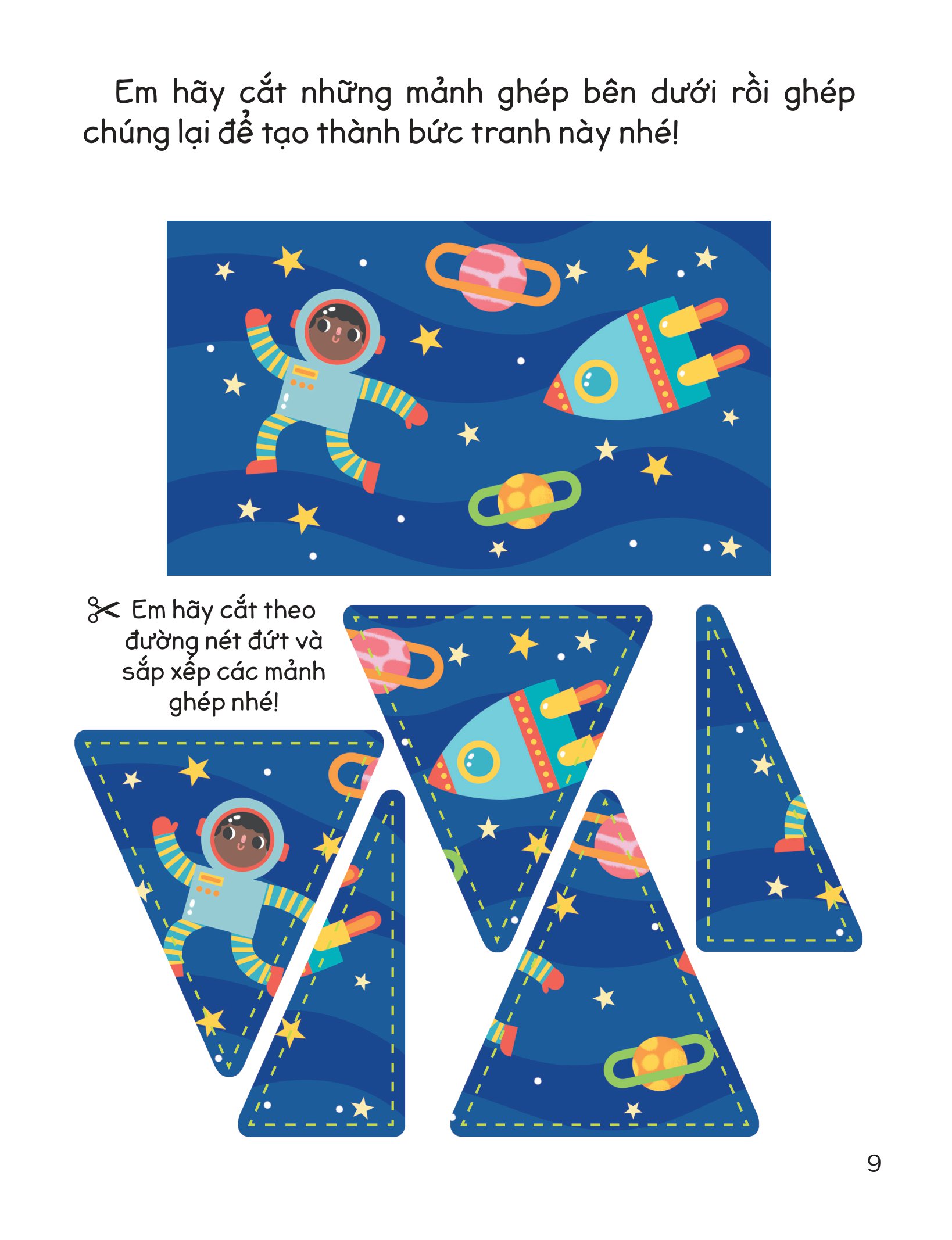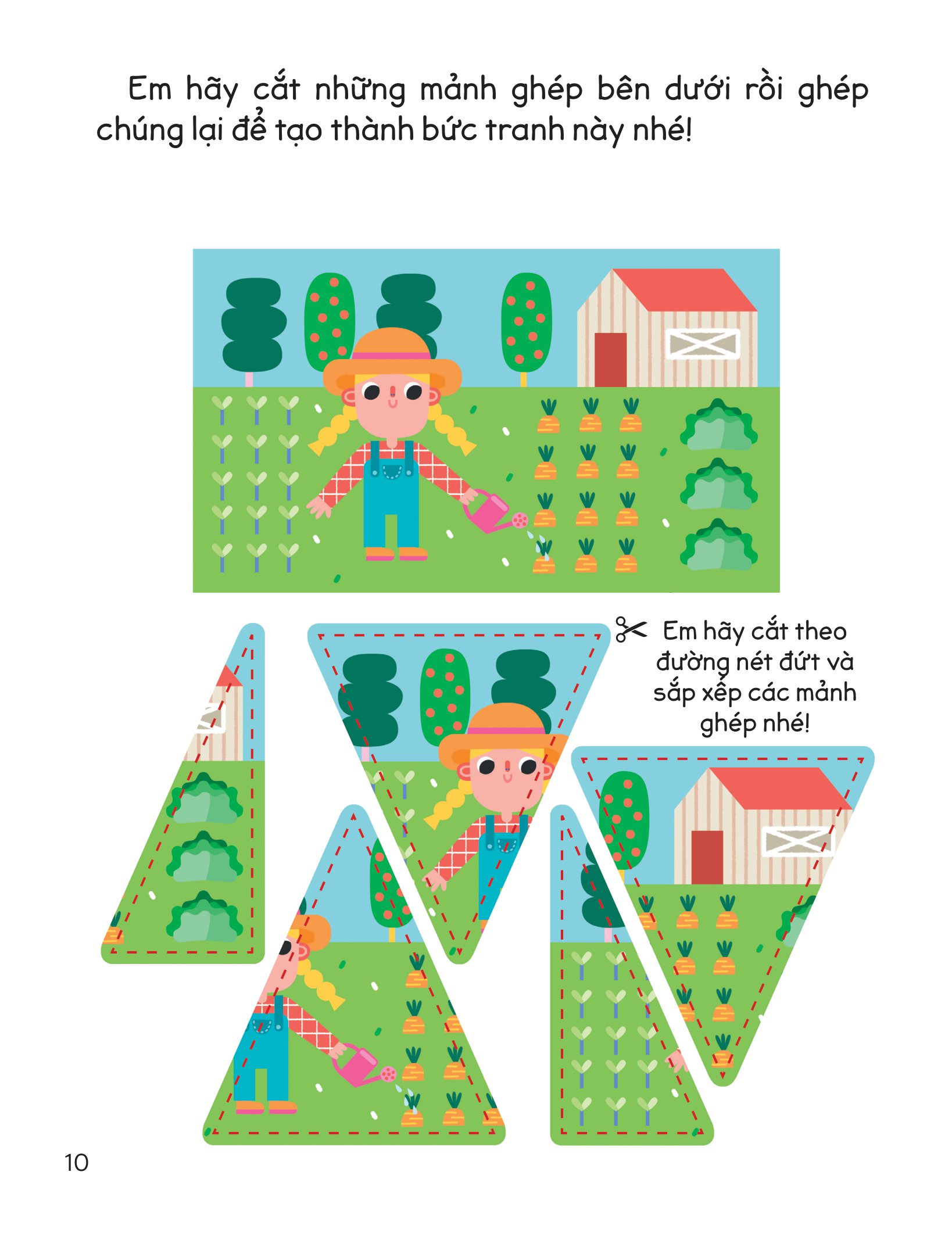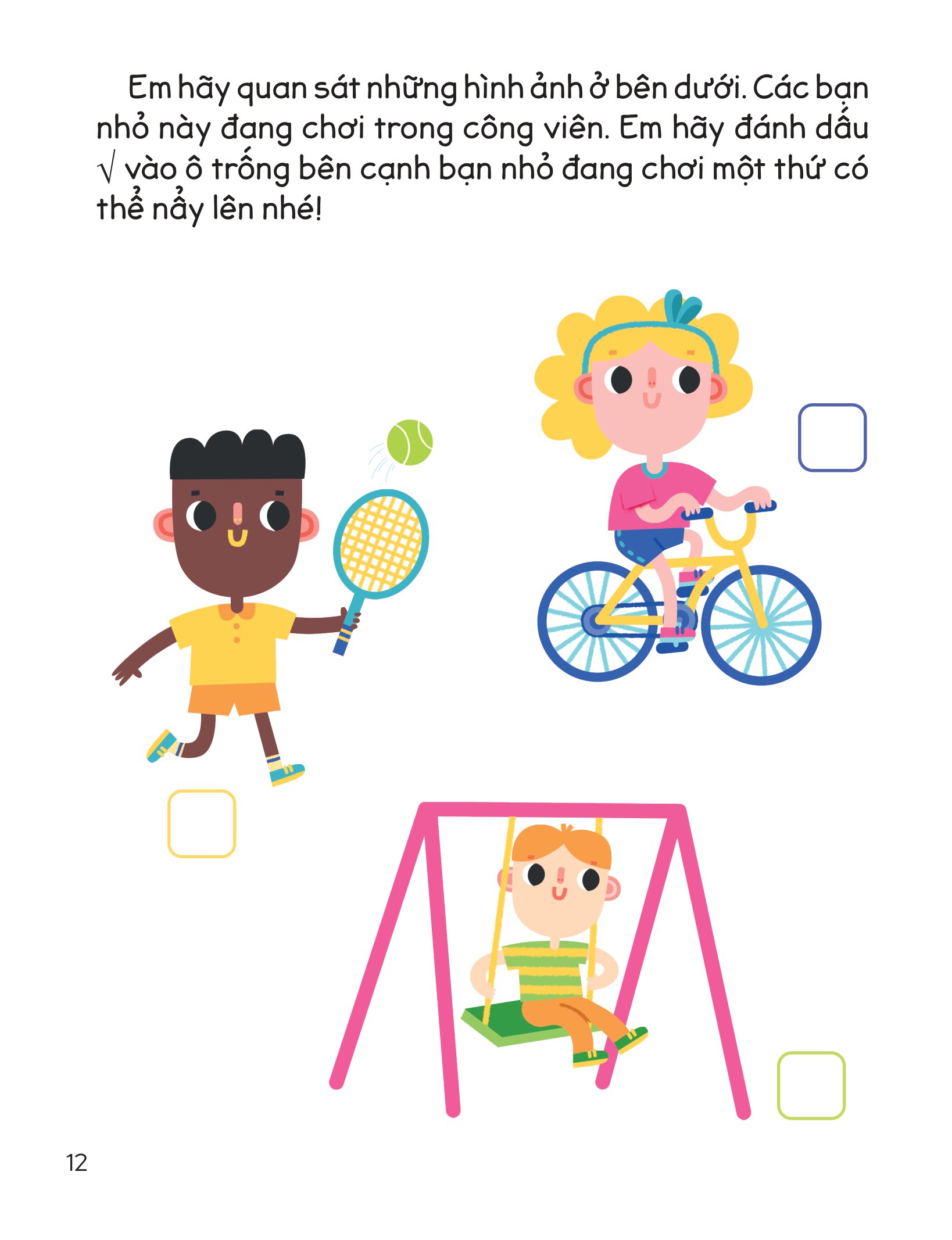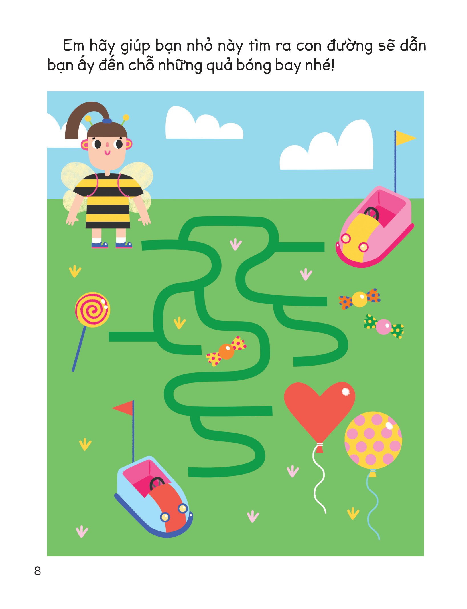 Đồng thời, các hoạt động trong sách cũng kích thích trí não của em, giúp em phát triển nhận thức thị giác, kỹ năng vận động tinh và sự phối hợp tay-mắt đấy.
