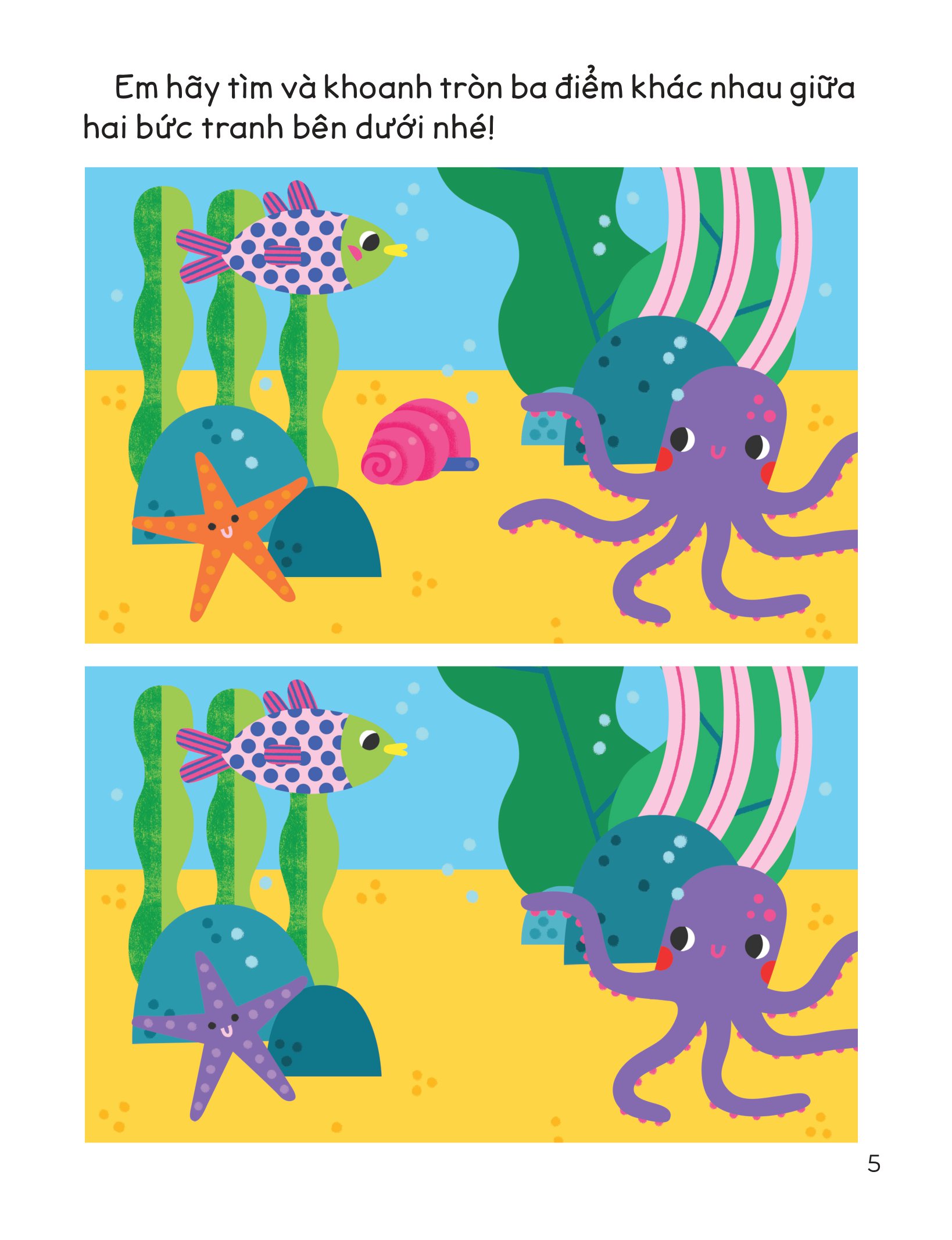 Đồng thời, các hoạt động trong sách cũng kích thích trí não của em, giúp em phát triển nhận thức thị giác, kỹ năng vận động tinh và sự phối hợp tay-mắt đấy.