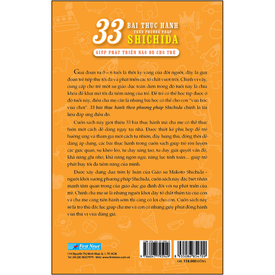 “33 bài thực hành theo phương pháp Shichida giúp phát triển não bộ cho trẻ” của tác giả Ko Shichida tập trung đưa ra các hướng dẫn, các bài thực hành thể hiện dưới dạng trò chơi, đảm bảo trẻ có thể học tập với niềm vui cũng như vun đắp sự gắn bó giữa cha mẹ và con cái. Cuốn sách đặc biệt nhấn mạnh tầm quan trọng của giáo dục gia đình, khẳng định vai trò của cha mẹ trong việc xây dựng một môi trường phát triển phù hợp cho con trẻ. Ở phần mở đầu, tác giả Ko Shichida tâm sự: “Tôi rất mong các bậc phụ huynh sẽ có sự nhận thức đúng đắn rằng không có mâu thuẫn nào giữa sự phát triển bình thường của con trẻ với việc tạo ra cho con một môi trường giúp con phát huy năng lực và năng khiếu”.