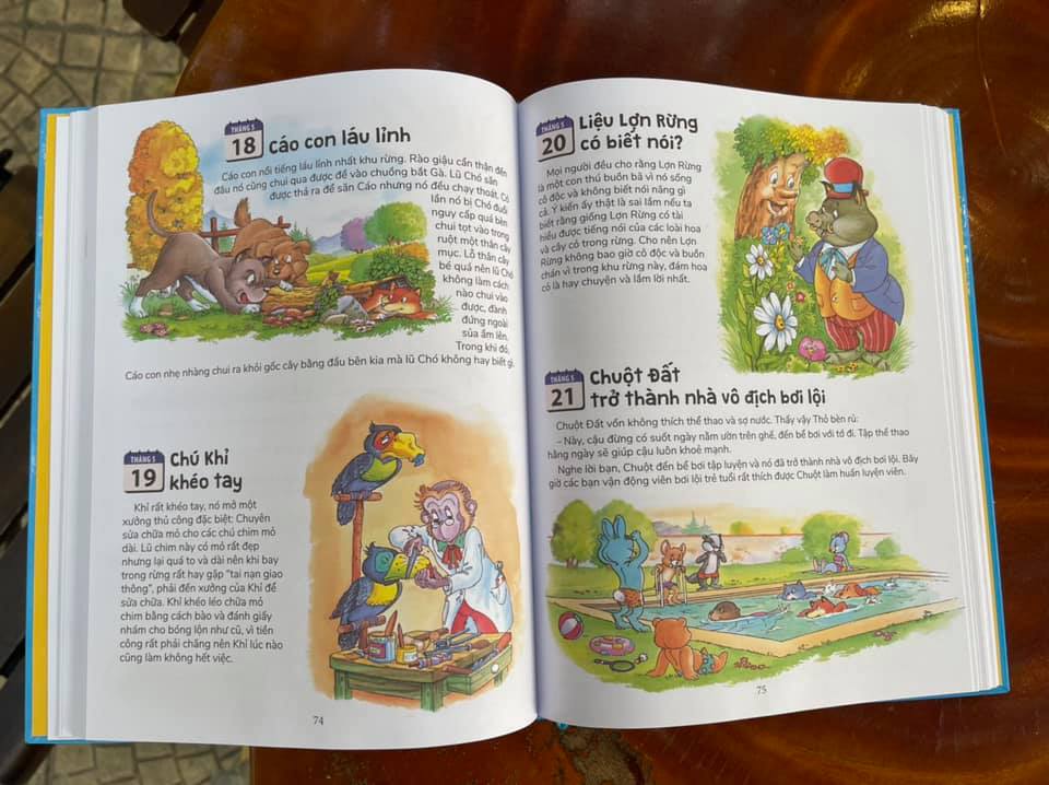 Câu chuyện dạng mẹ kể bé nghe trước khi đi ngủ, tối nào cũng đọc mới hết năm được.
