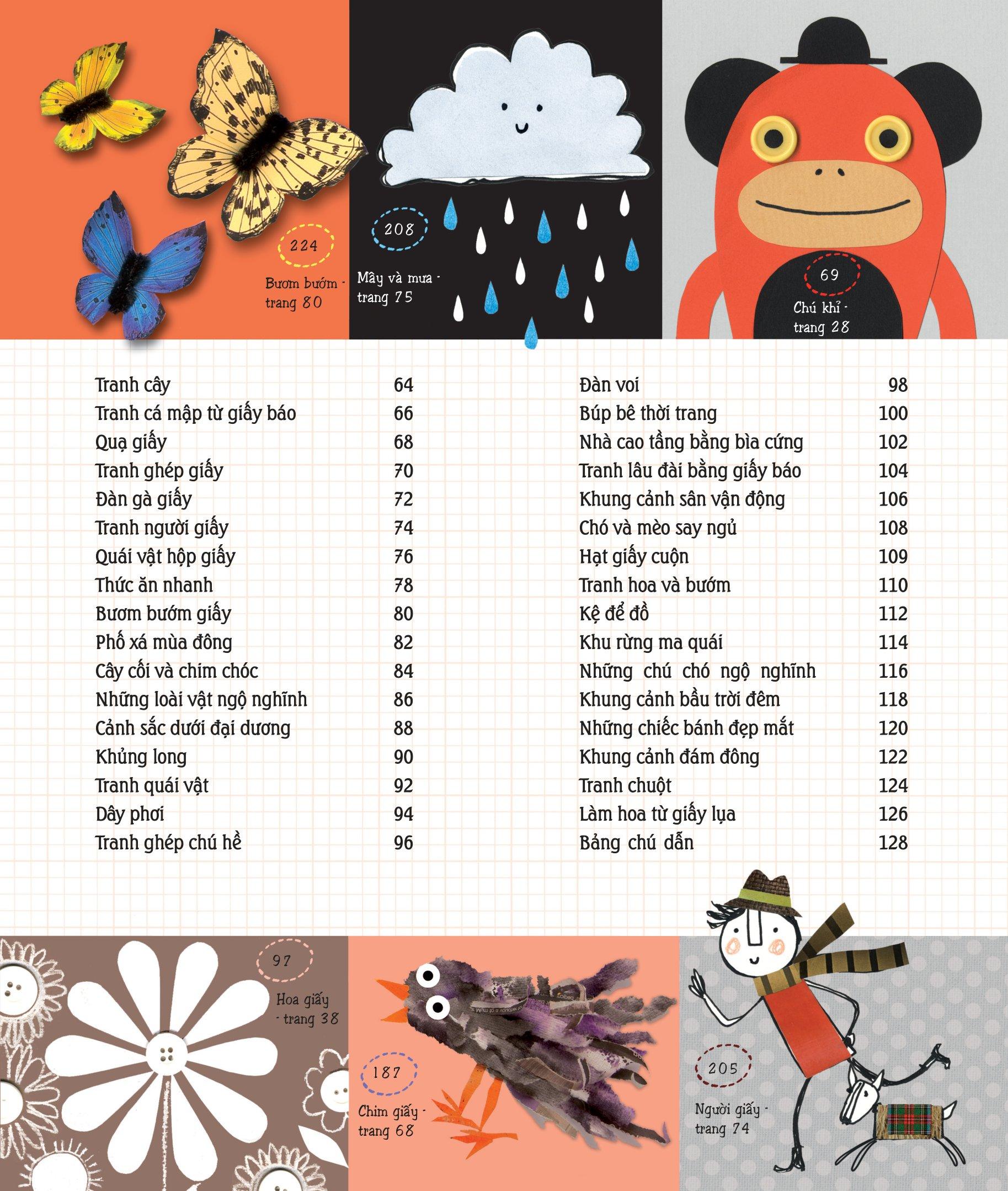 365 Ý Tưởng Sáng Tạo - Biến Giấy Báo, Bìa Carton Bỏ Đi Thành Các Món Đồ Có Giá Trị là cuốn sách khổ lớn với nhiều hình ảnh minh họa xinh xắn, cung cấp cho các em những gợi ý biến những vật dụng thân thuộc xung quanh các em như lõi giấy, vỏ bút, ghim kẹp sách, kẹp quần áo, que kem… thành những món đồ chơi dễ thương, những món quà tặng độc đáo cho bạn bè và người thân. Cuốn sách không chỉ mang tới những phút giải trí vui vẻ, bổ ích mà còn giúp các em có cơ hội rèn luyện sự khéo léo, tính kiên nhẫn, tỉ mỉ, tư duy bố cục hình ảnh sắc nét.