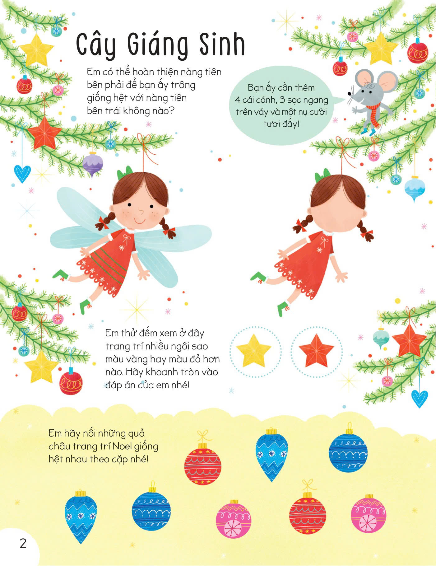 Ngoài ra còn rất nhiều các hoạt động khác như: Giải ô chữ, nối số, vẽ tranh, giải mã mê cung… đang chờ bạn nhỏ khám phá trong cuốn sách này đấy! Hãy cùng thỏa sức sáng tạo để làm nên một mùa Giáng Sinh thật diệu kỳ nhé!