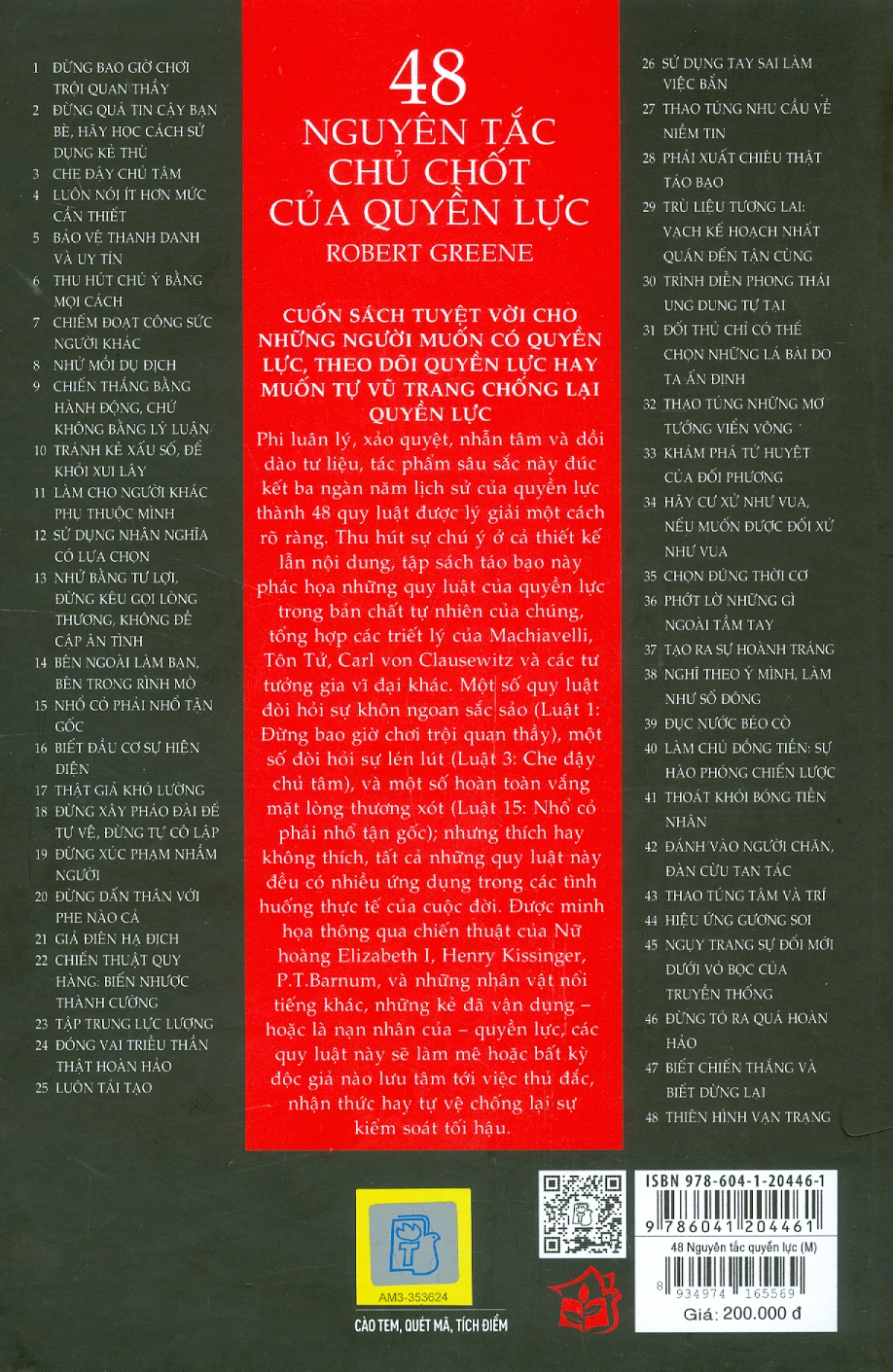 Phi luân lý, xảo quyệt, nhẫn tâm và dồi dào tư liệu, “48 nguyên tắc chủ chốt của quyền lực” của Robert Greene hoàn toàn có thể giúp bạn vươn tới những đỉnh cao quyền lực và cũng có thể giúp bạn đạt được tột đỉnh vinh quang.