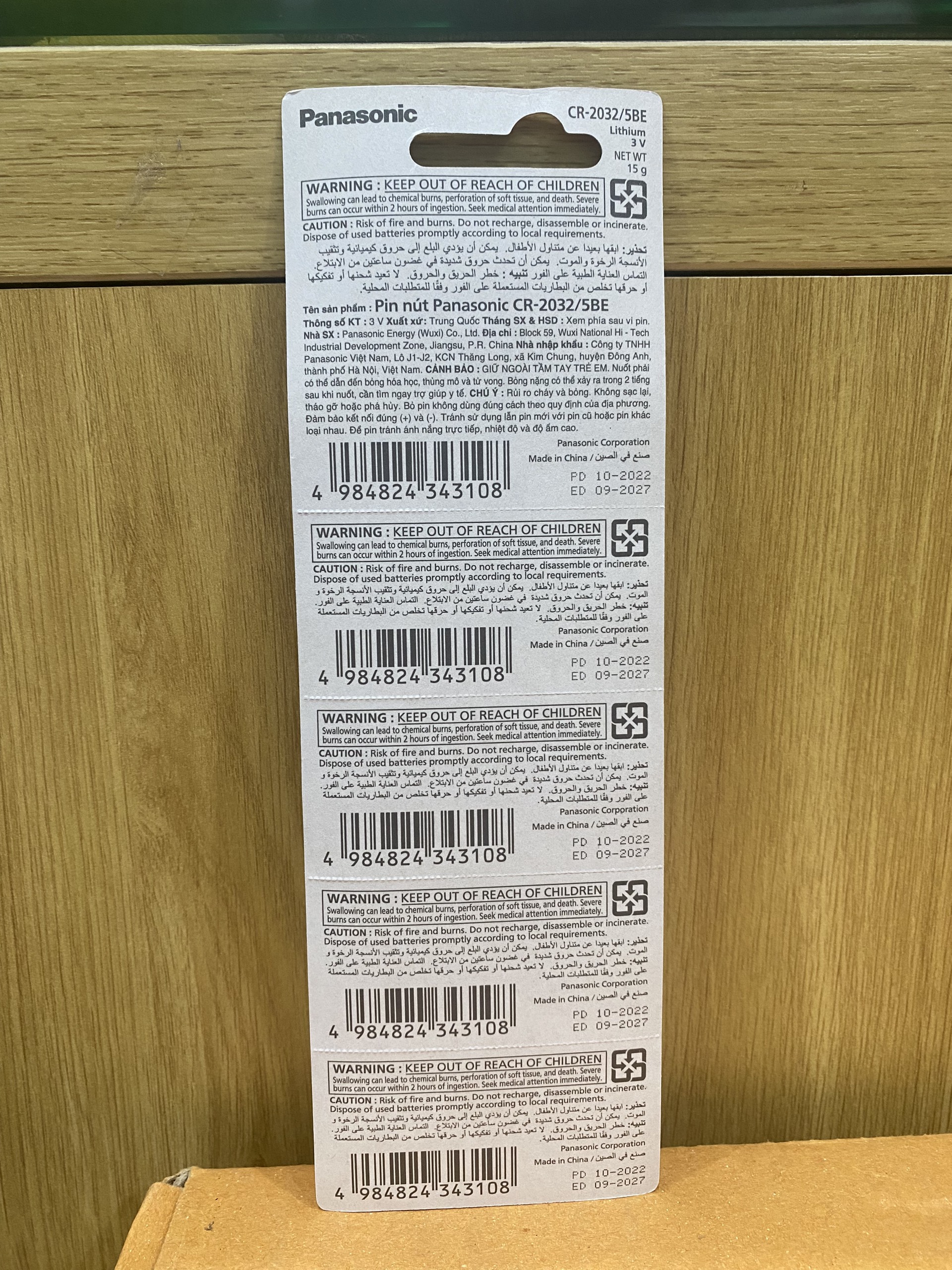 Thời gian lưu trữ và sử dụng của pin nút Panasonic là 5 năm.