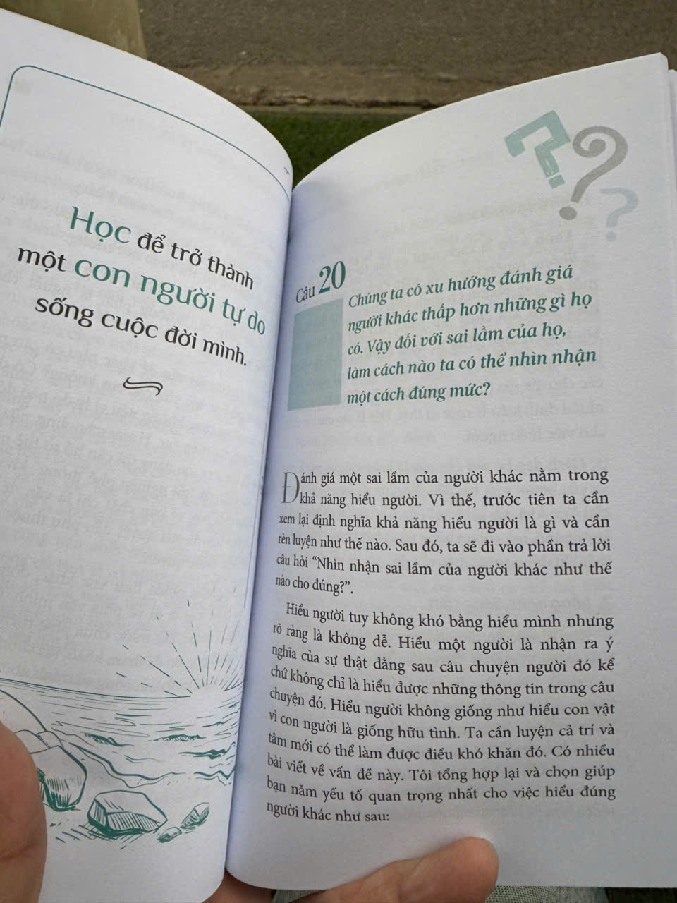 Đây là phần giúp độc giả tự soi chiếu nội tâm, trả lời những câu hỏi quen thuộc nhưng chưa bao giờ dễ dàng, chẳng hạn như: "Làm thế nào để phân biệt đúng – sai?", "Làm cách nào để cân bằng giữa công việc và cuộc sống?", hay "Có nên thay đổi tính cách hướng nội?". Qua mỗi câu hỏi, tác giả không chỉ đưa ra phân tích lý thuyết mà còn gợi mở những cách tiếp cận thực tế, mang tính ứng dụng cao trong đời sống.