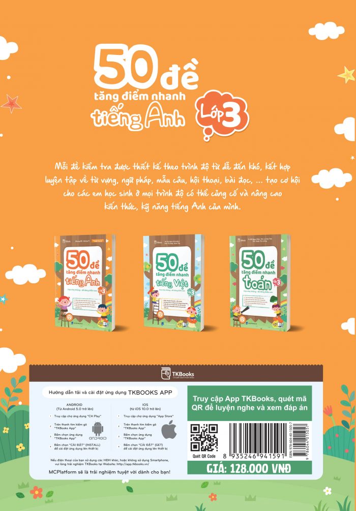 Trong hành trình học tập, môn Tiếng Anh luôn là một môn học quan trọng và cần thiết, đặc biệt là ở cấp tiểu học nơi các em bắt đầu xây dựng nền tảng ngôn ngữ cho tương lai. Để giúp các em học sinh lớp 3 có thể củng cố và nâng cao kiến thức đã học, cuốn “50 Đề Tăng Điểm Nhanh Tiếng Anh Lớp 3” do TKBooks cung cấp sẽ là một công cụ học tập lý tưởng.