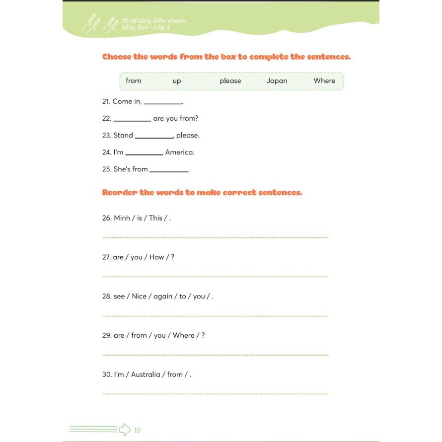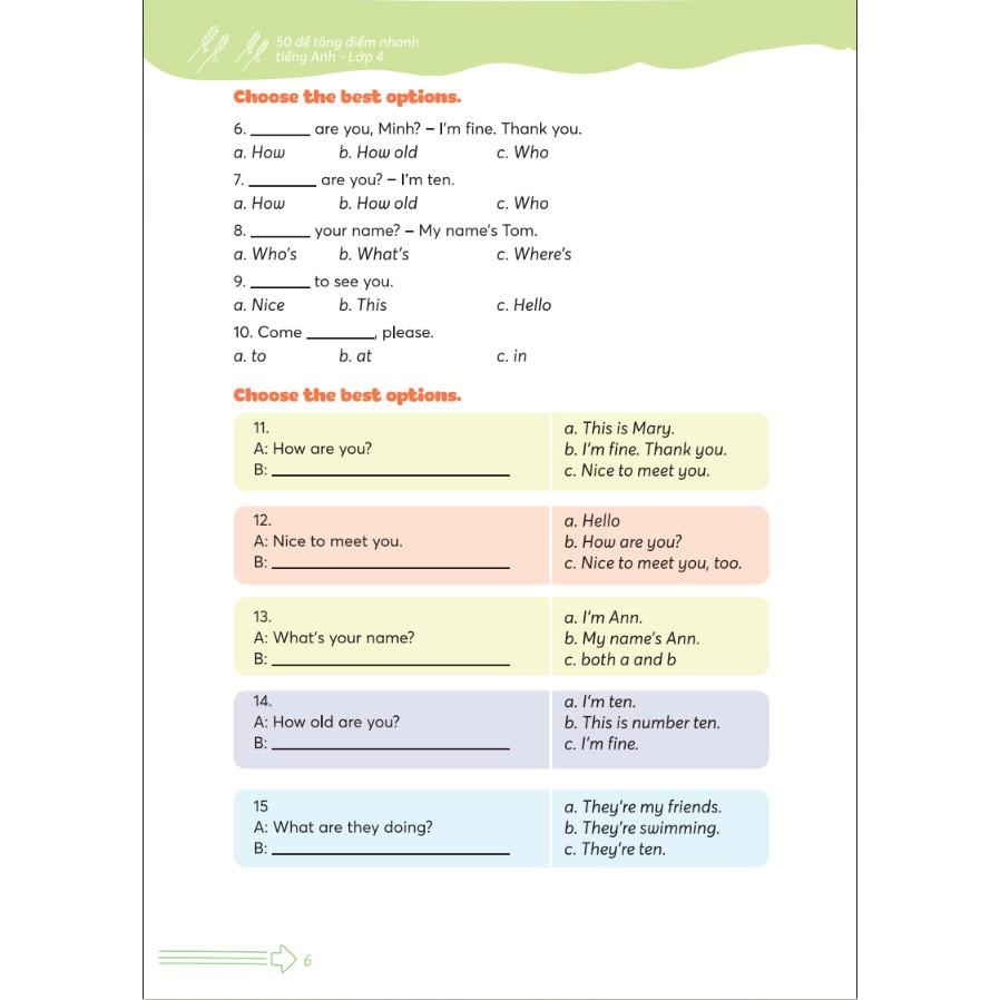 Cuốn sách 50 Đề Tăng Nhanh Điểm Tiếng Anh Lớp 4 sẽ giúp các em vững vàng thêm nền tảng kiến thức để tăng điểm vào cuối mỗi kì.