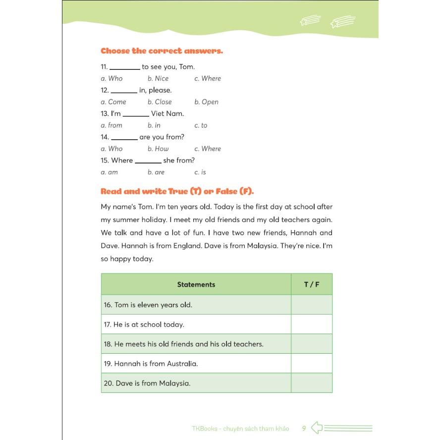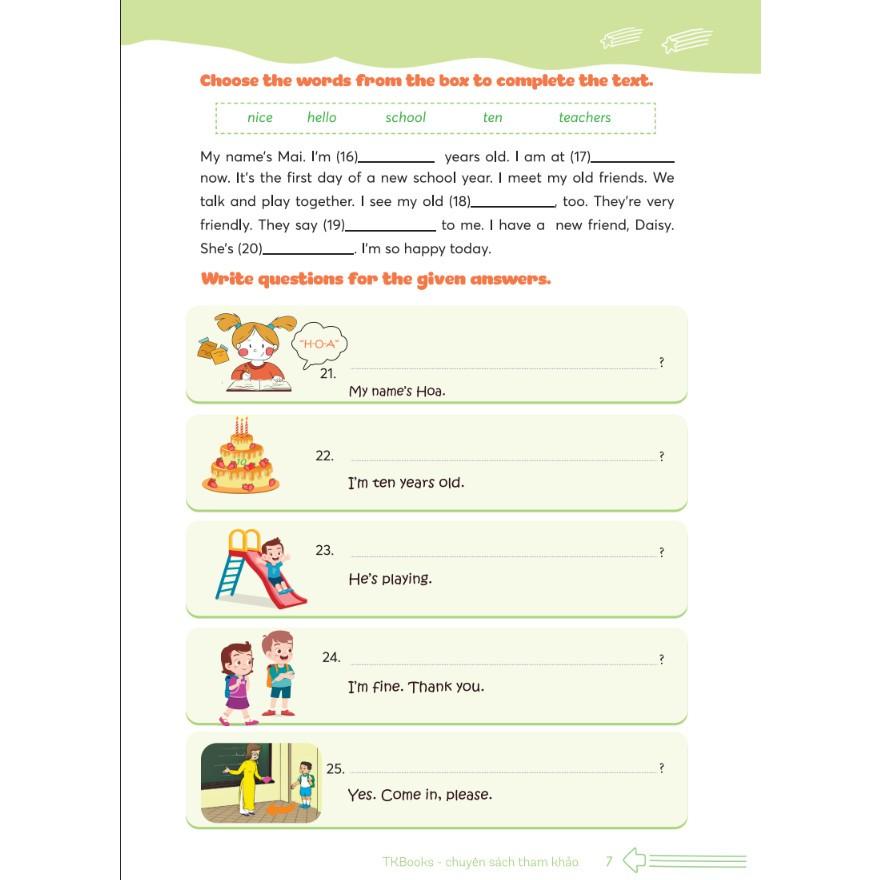 Mỗi đề kiểm tra được thiết kế theo trình độ từ dễ đến khó, kết hợp luyện tập về từ vựng, ngữ pháp, mẫu câu, hội thoại, bài đọc, … tạo cơ hội cho các em học sinh ở mọi trình độ có thể củng cố và nâng cao kiến thức, kỹ năng tiếng Anh của mình.