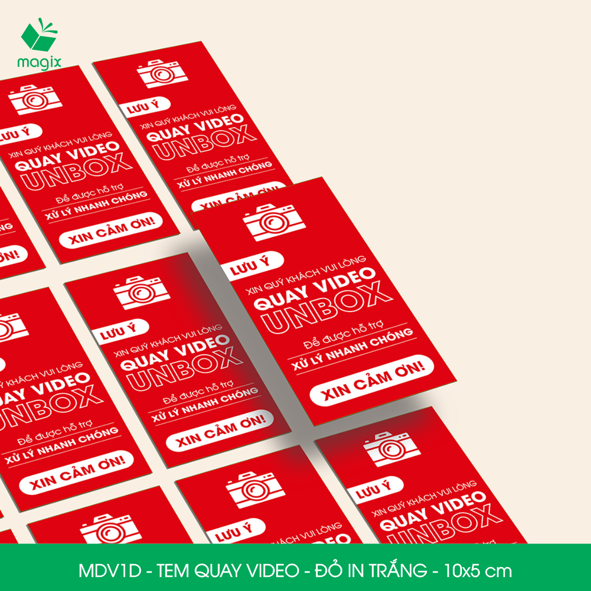 ✨50 Tem chú ý quay video trước khi mở hàng, decal dán hộp - 10x5 cm - Đỏ in trắng - MDV1D