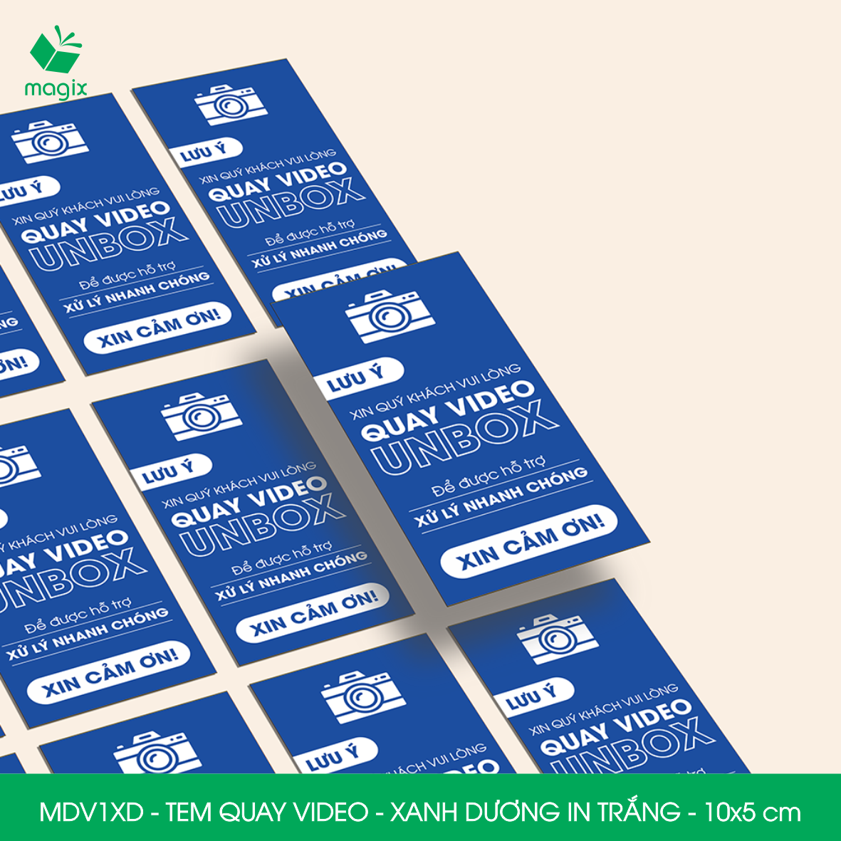 ✨50 Tem chú ý quay video trước khi mở hàng, decal dán hộp - 10x5 cm - Xanh dương in trắng - MDV1XD