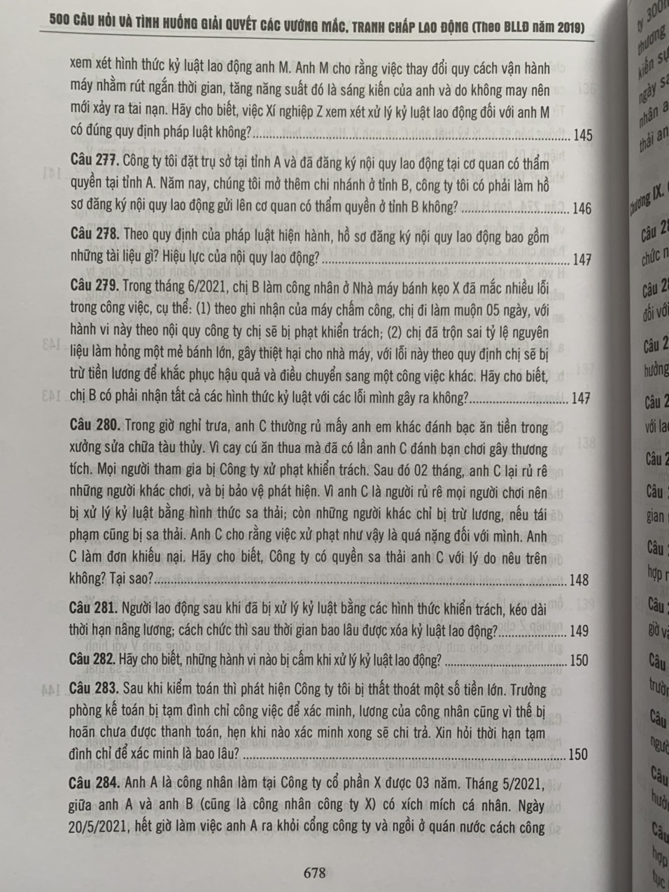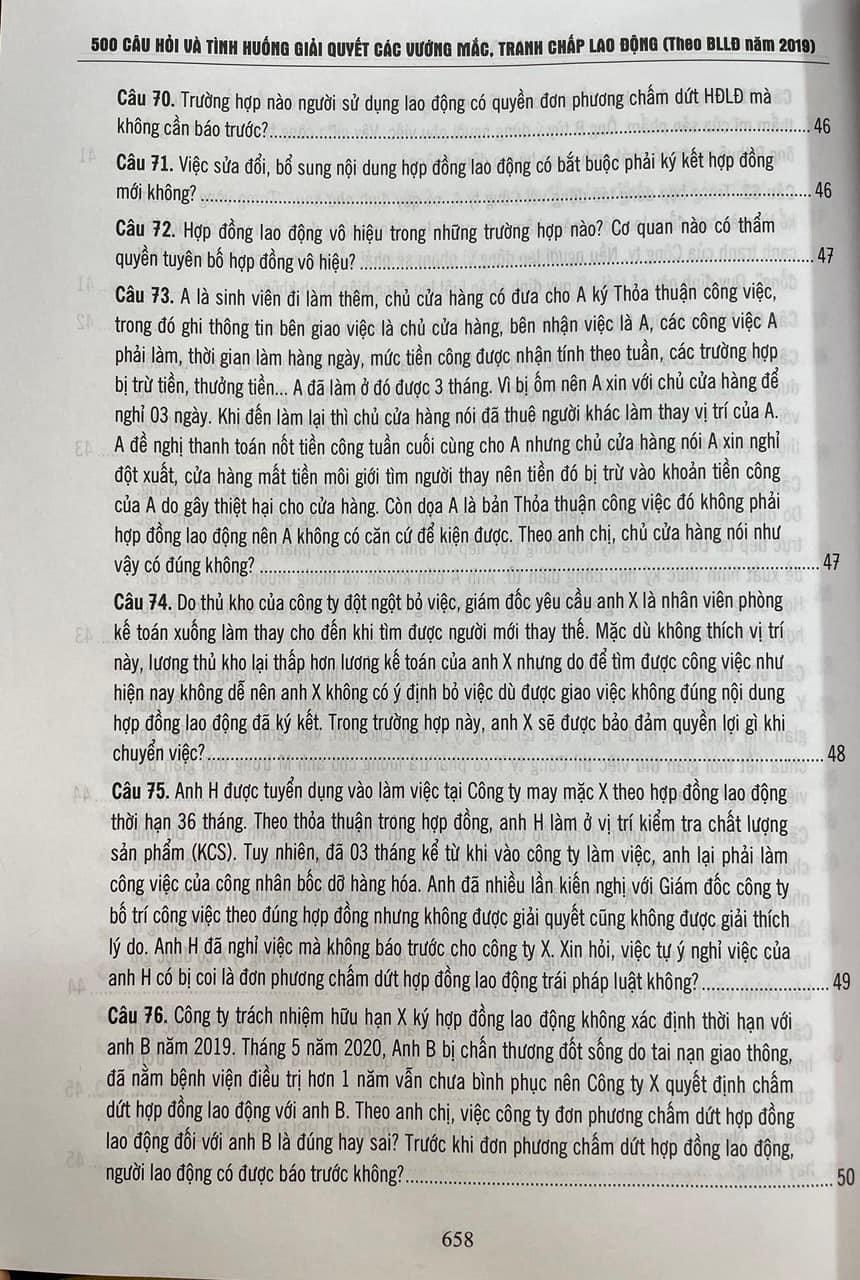 Phần II: 500 câu hỏi và tình huống giải quyết các vướng mắc , tranh chấp lao động theo bộ luật Lao động năm 2019
