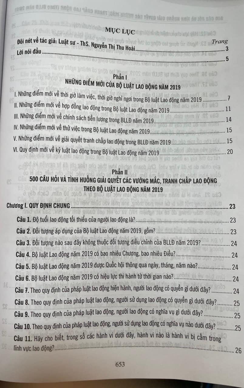 Sách luật - 500 Câu hỏi và tình huống giải quyết các vướng mắc tranh chấp lao động Tác giả: Luật sư, Ths. Nguyễn Thị Thu Hoài Nhà xuất bản: NXB Lao động Nhà phát