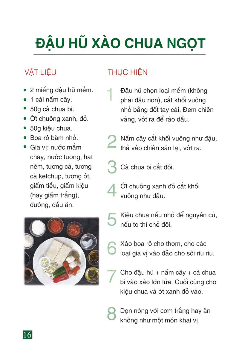 Cuốn sách mang lại cho bạn khá nhiều công thức nấu ăn đa dạng. Giới thiệu công thức chế biến các món chay ngon miệng, tốt cho sức khỏe.