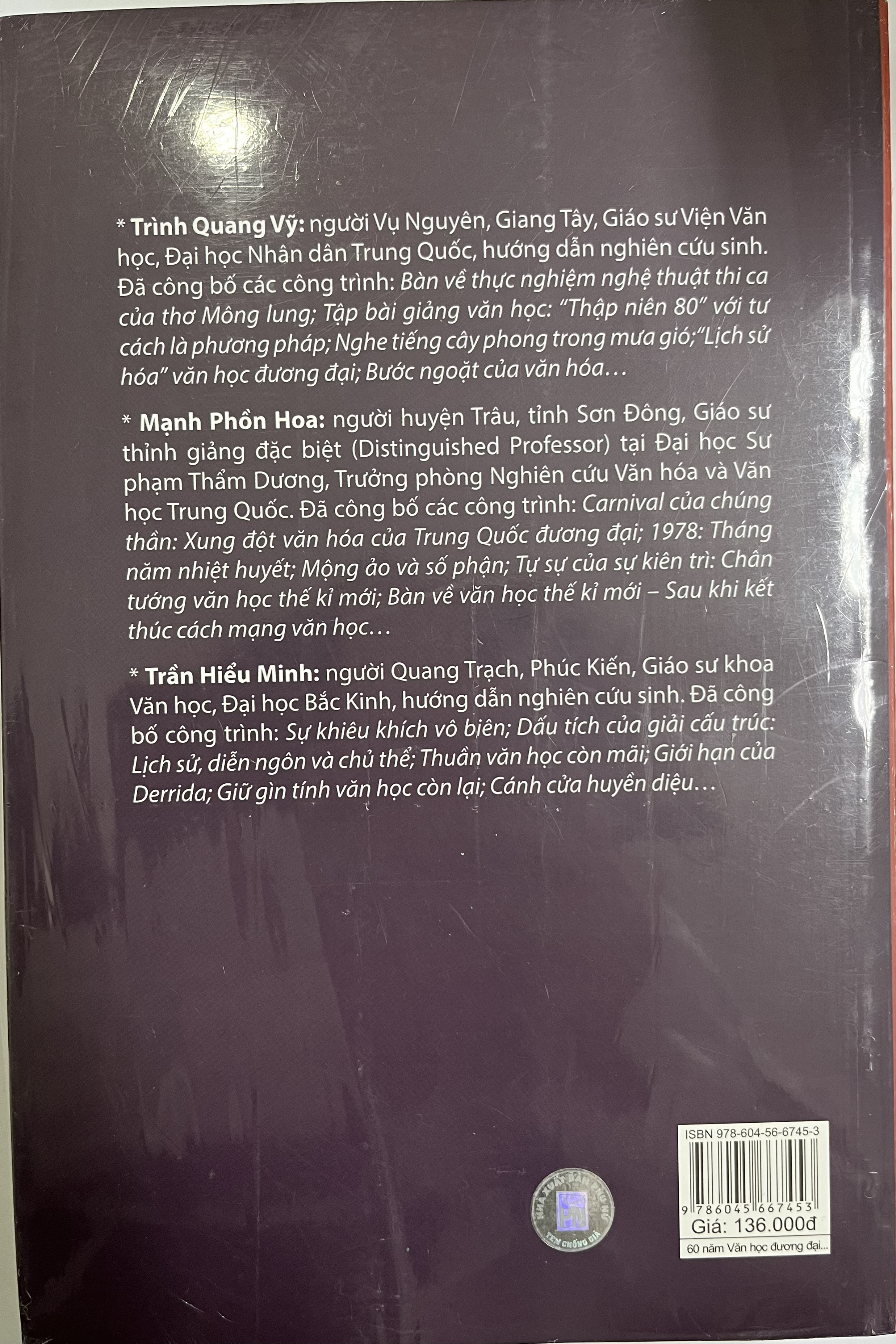 60 năm văn học đương đại Trung Quốc là công trình nghiên cứu văn học công phu của 3 tác giả Trình Quang Vỹ, Mạnh Phồn Hoa, Trần Hiểu Minh, những giáo sư văn học hàng đầu Trung Quốc, về lịch sử phát triển của văn học Trung Quốc suốt 6 thập kỷ kể từ năm 1949. Đây chắc chắn là một tài liệu tham khảo hữu ích cho những ai muốn quan tâm đến dòng chảy văn chương nhiều thác ghềnh và lắm thăng trầm ở quốc gia đông dân nhất thế giới này.