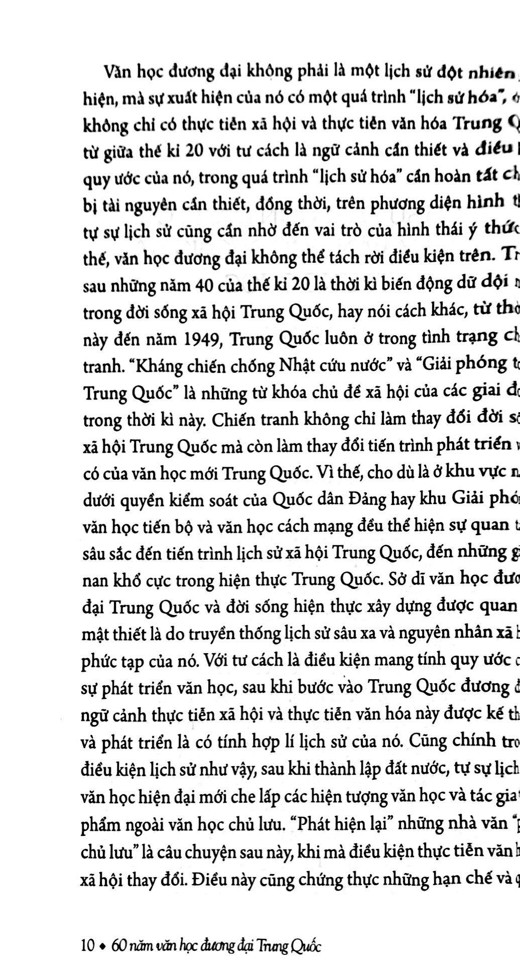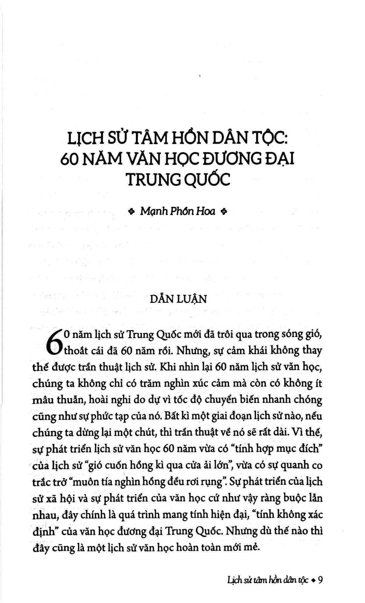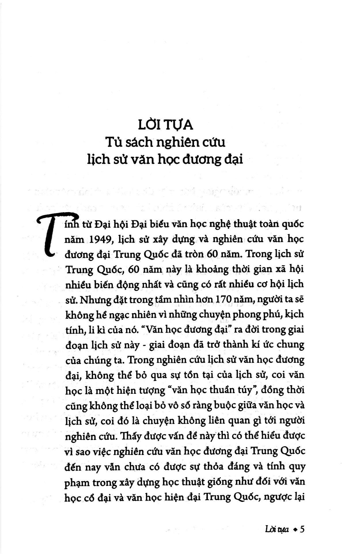 “Khi nhìn lại 60 năm lịch sử văn học, chúng ta không chỉ có trăm nghìn xúc cảm mà còn có không ít mâu thuẫn, hoài nghi do dự vì tốc độ chuyển biến nhanh chóng cũng như sự phức tạp của nó. Sự phát triển của lịch sử xã hội và sự phát triển của văn học cứ như vậy ràng buộc lẫn nhau, đây chính là quá trình mang tính hiện đại, tính không xác định” của văn học đương đại Trung Quốc. Nhưng dù thế nào thì đây cũng là một lịch sử văn học hoàn toàn mới mẻ”.