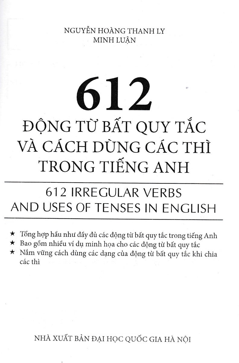 600 Động Từ Bất Quy Tắc Và Cách Dùng Các Thì Trong Tiếng Anh ------------ Cuốn sách giúp người đọc ghi nhớ và biết cách sử dụng chính xác các động từ bất quy tắc